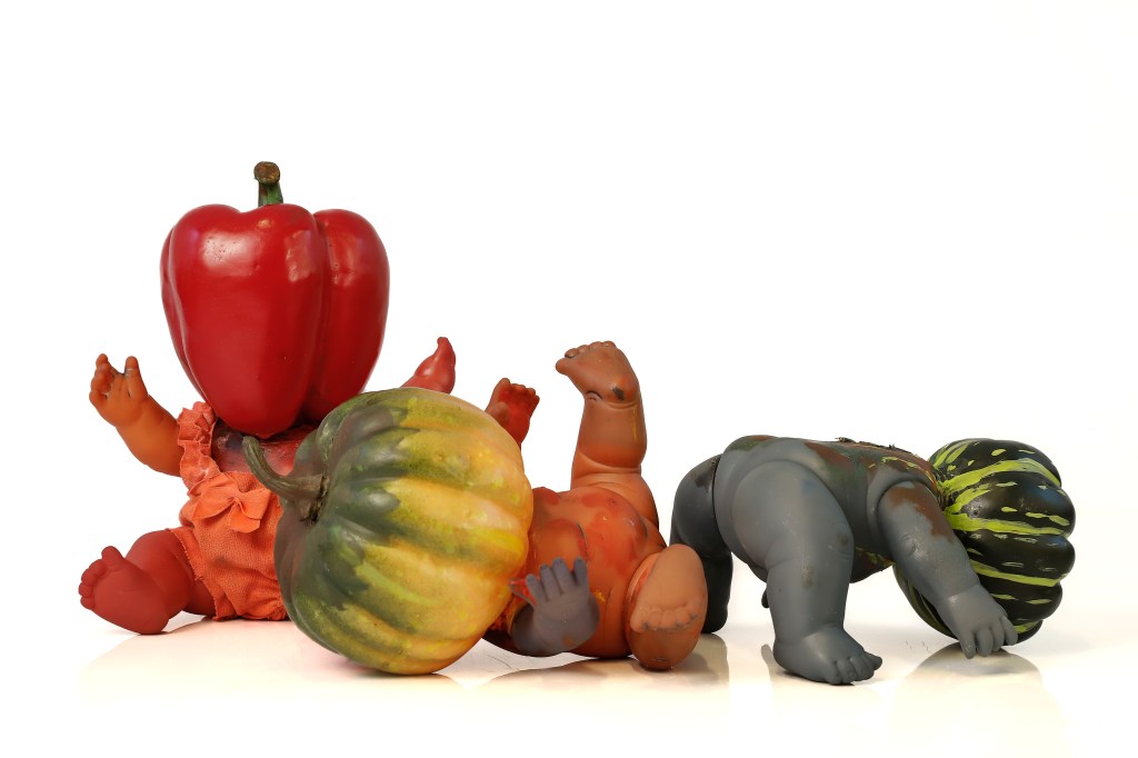 composta por 60 bonecas articuláveis, peças plásticas e outros objetos.