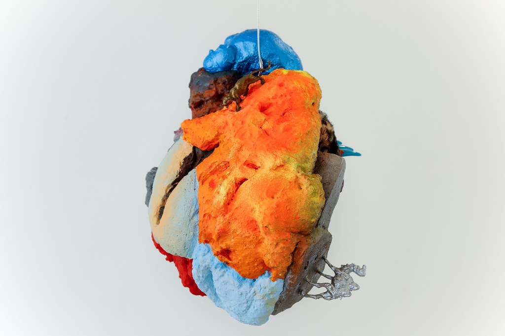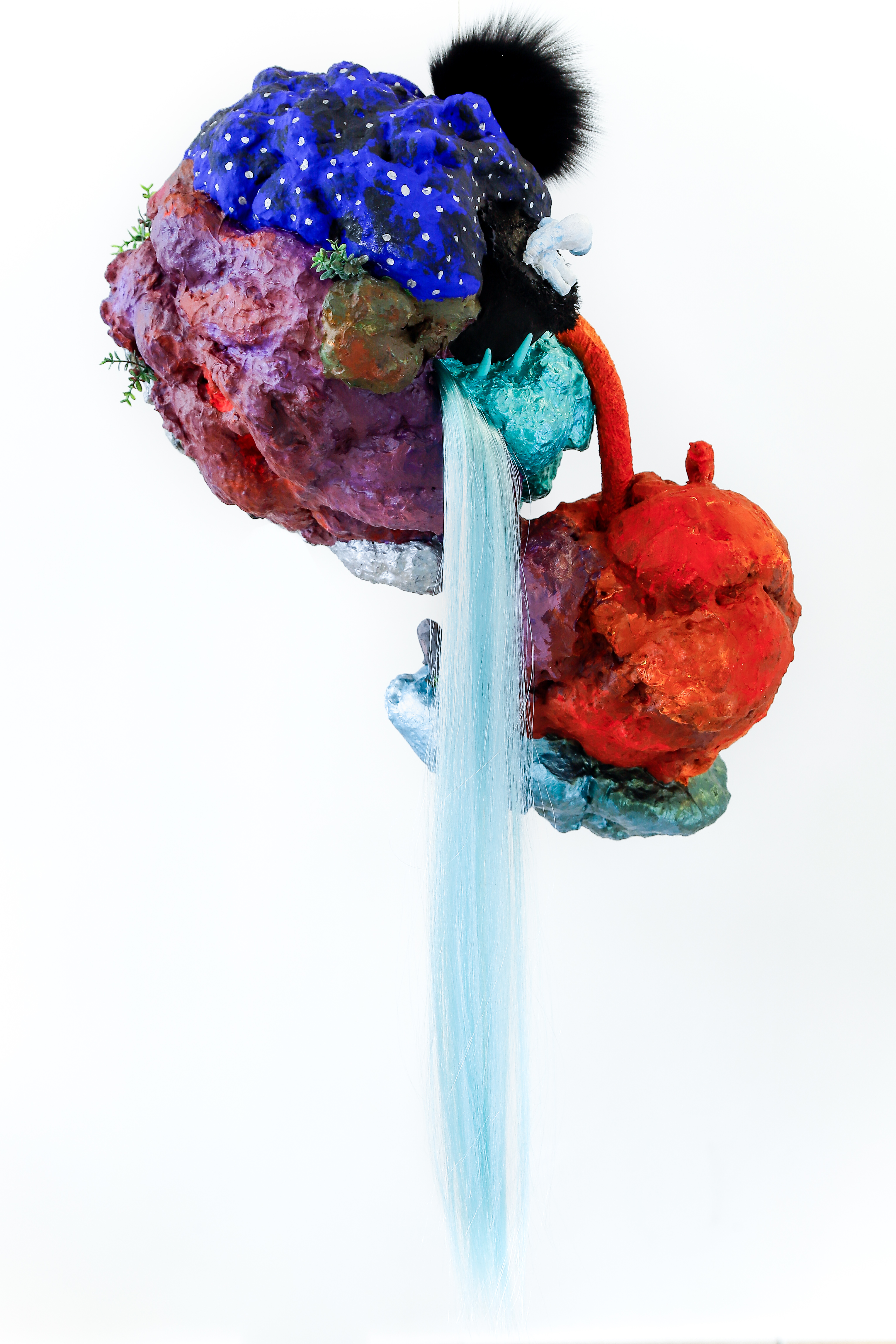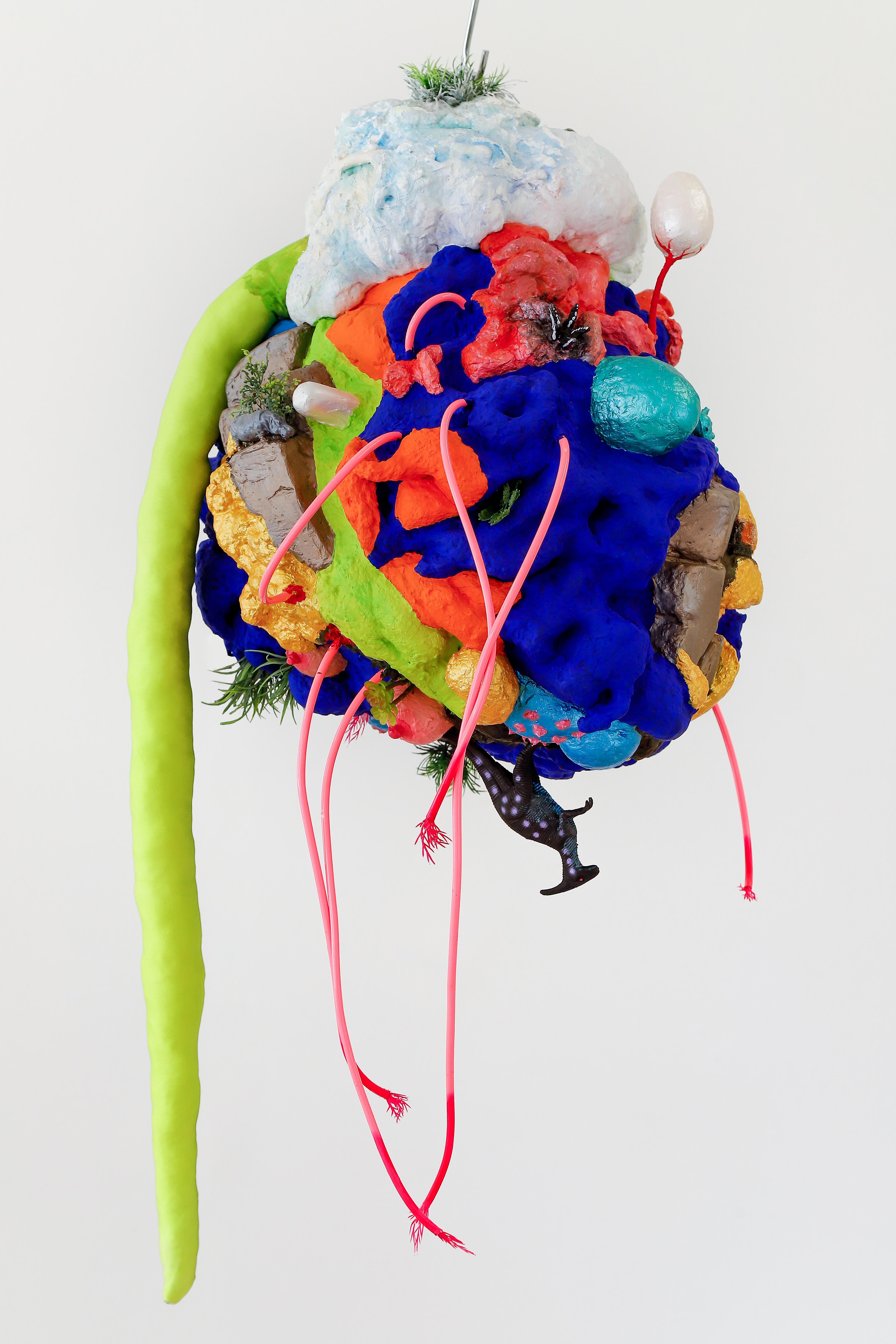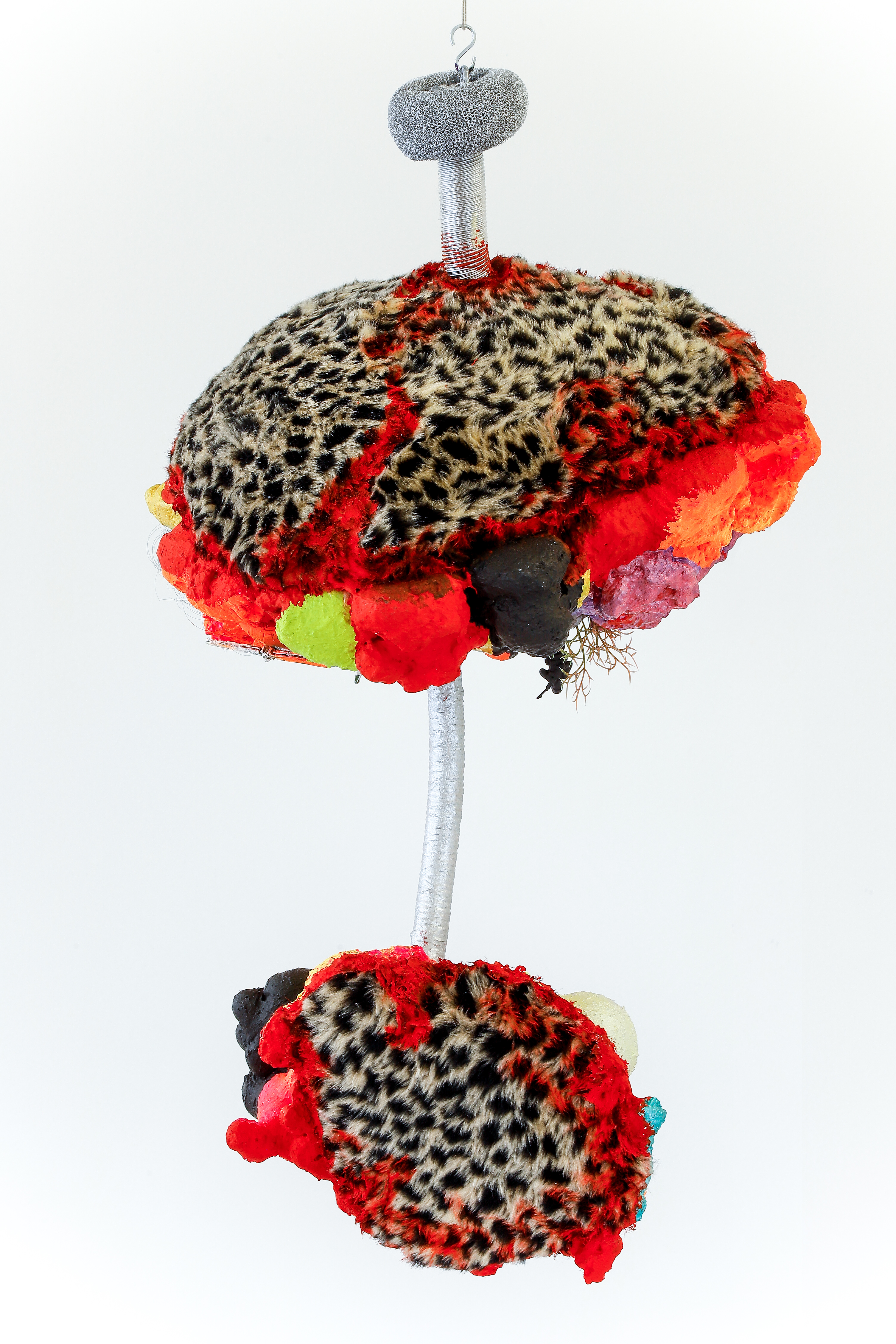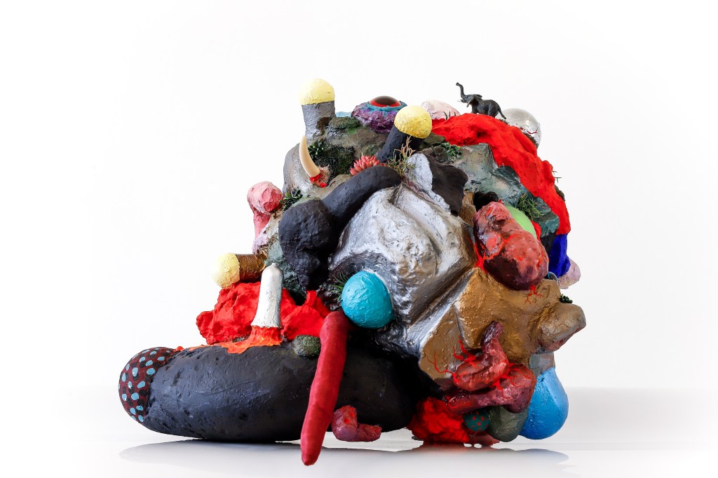 espuma expansiva, peças plásticas, tecidos, arames, objetos, pintura acrílica
