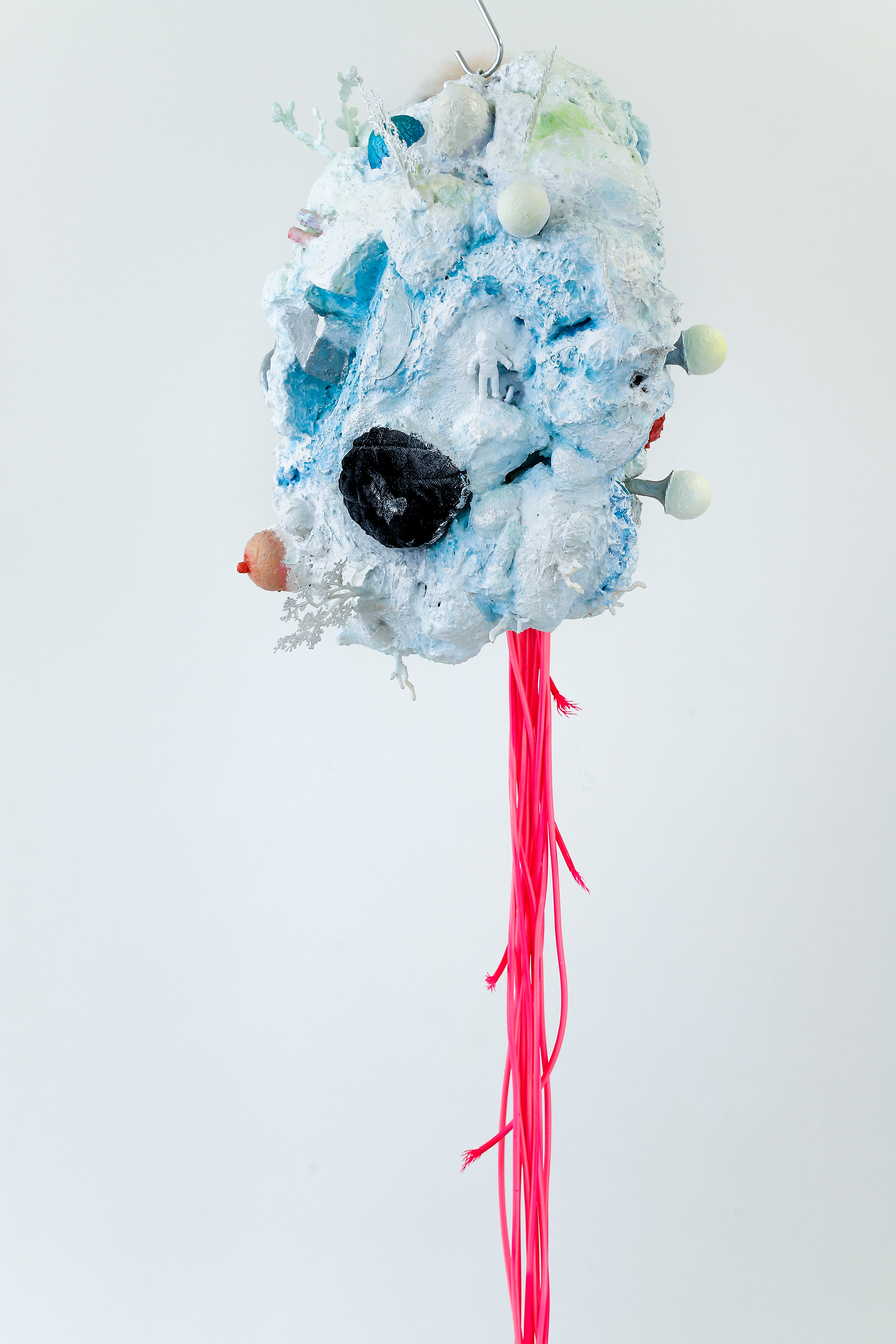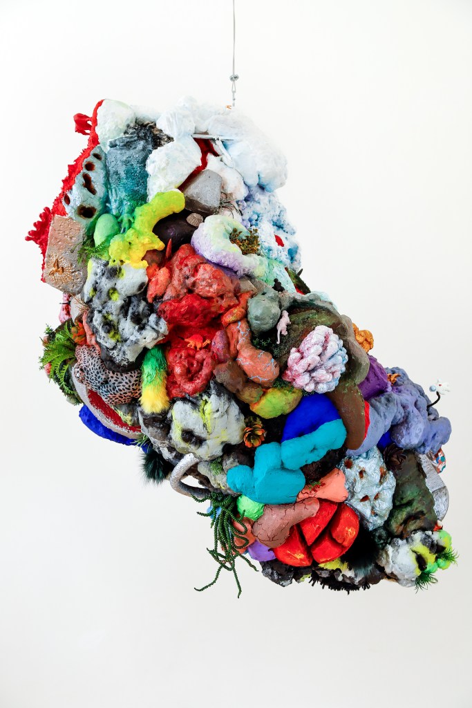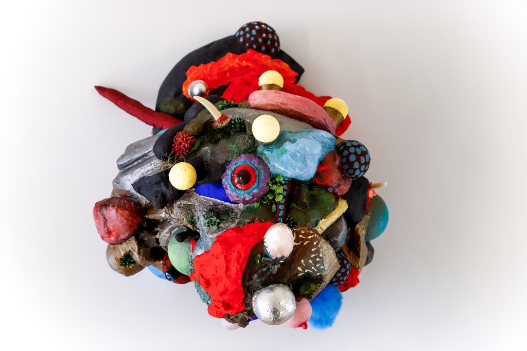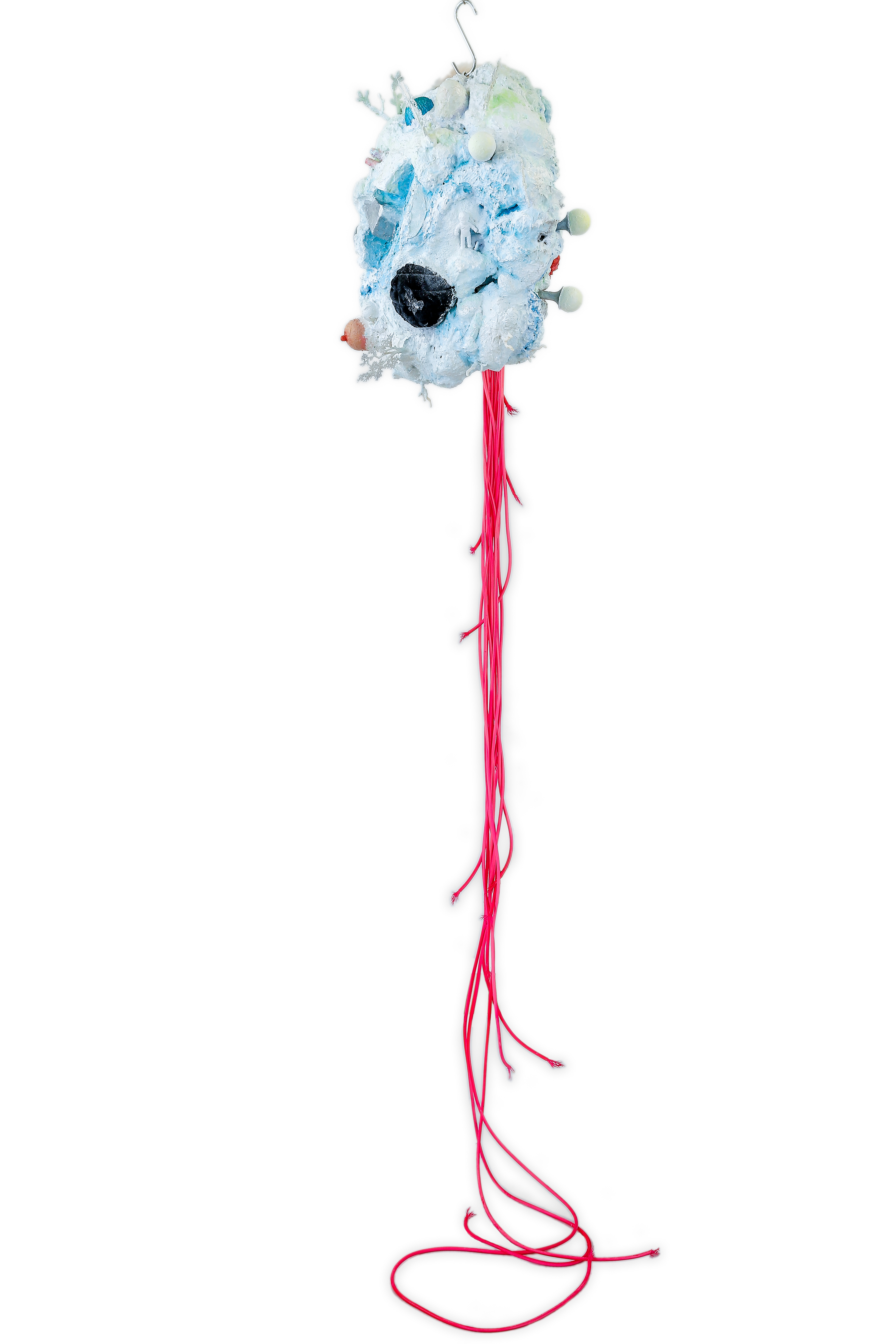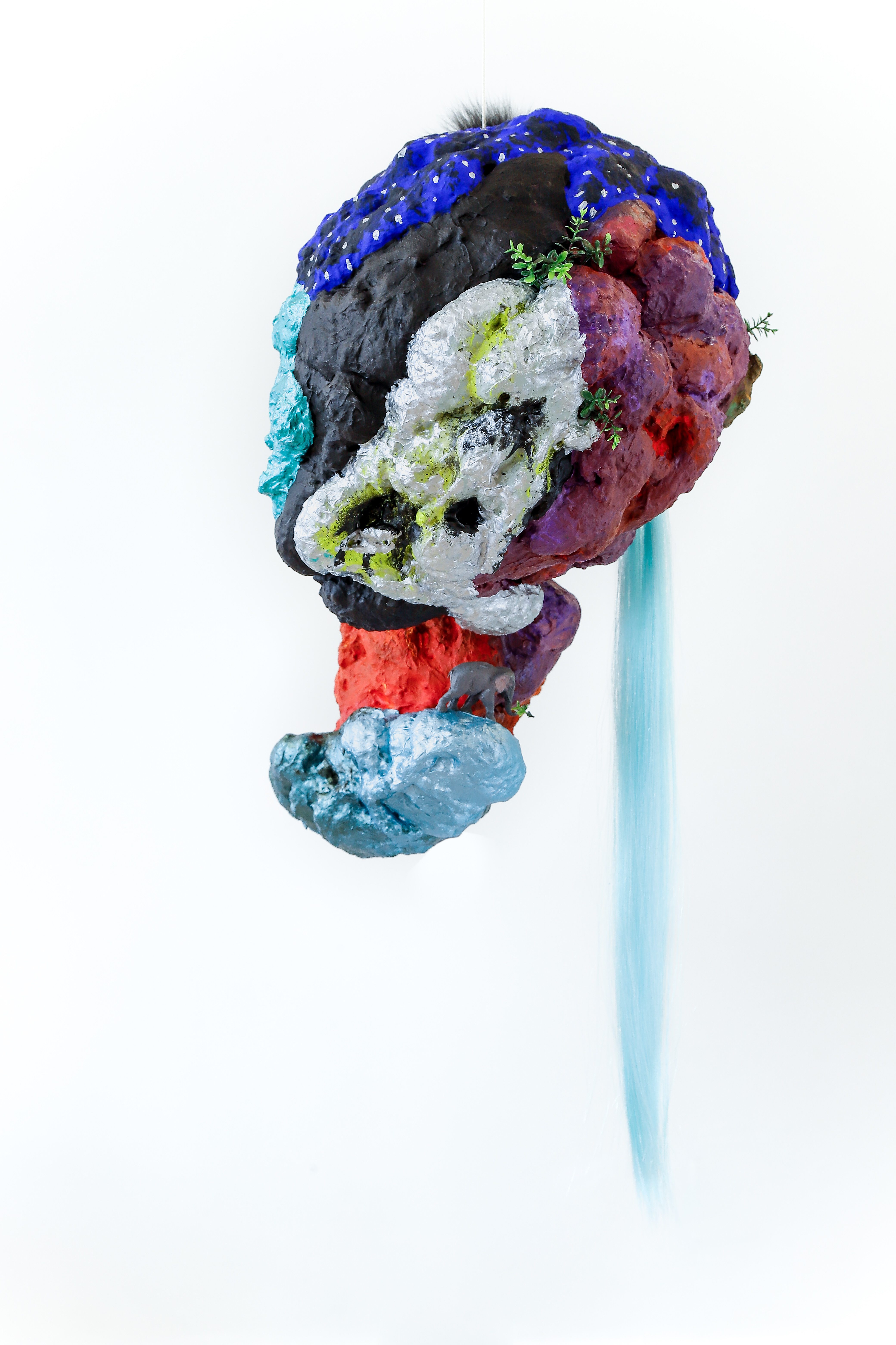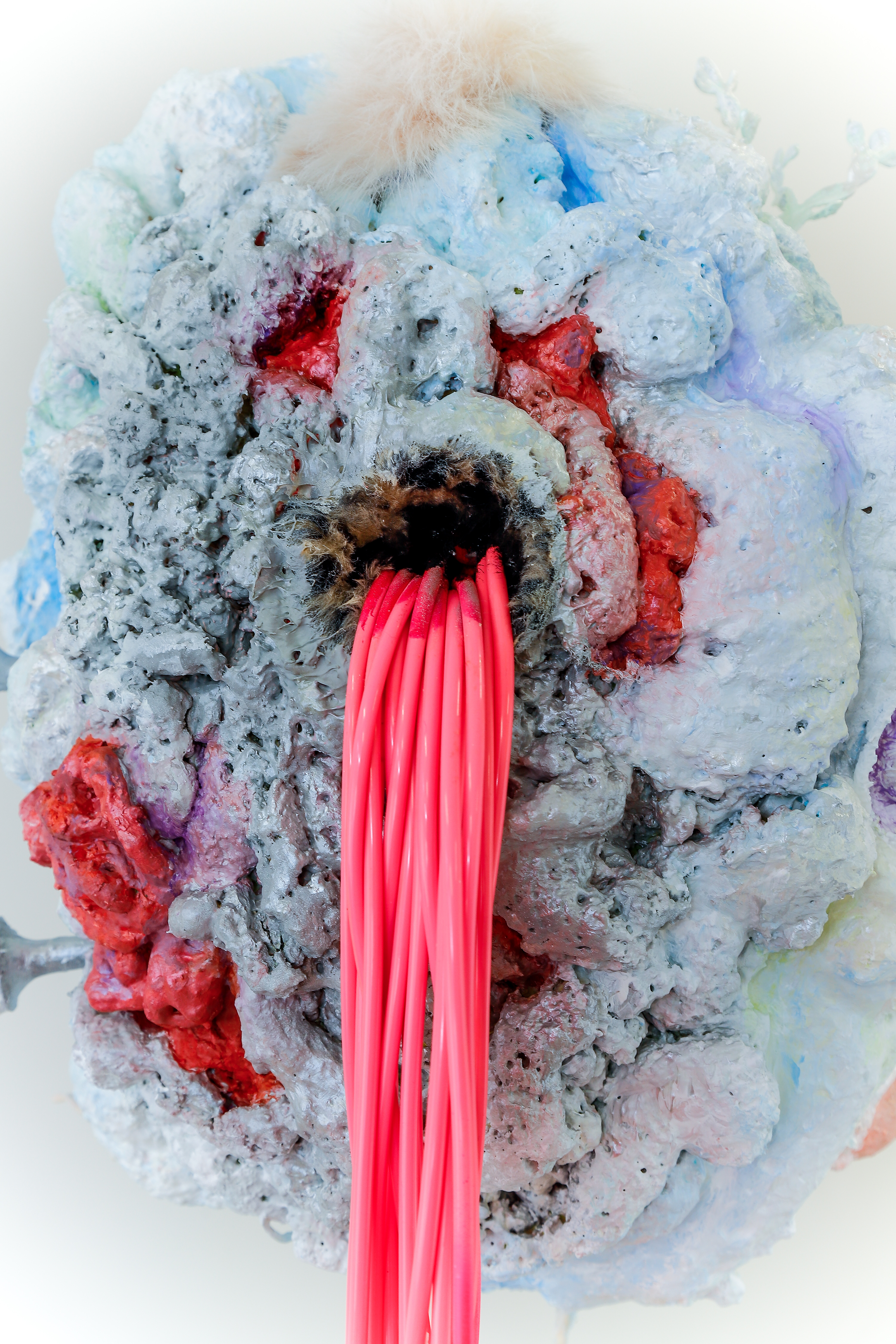 espuma expansiva, peças plásticas, tecidos, arames, objetos, pintura acrílica