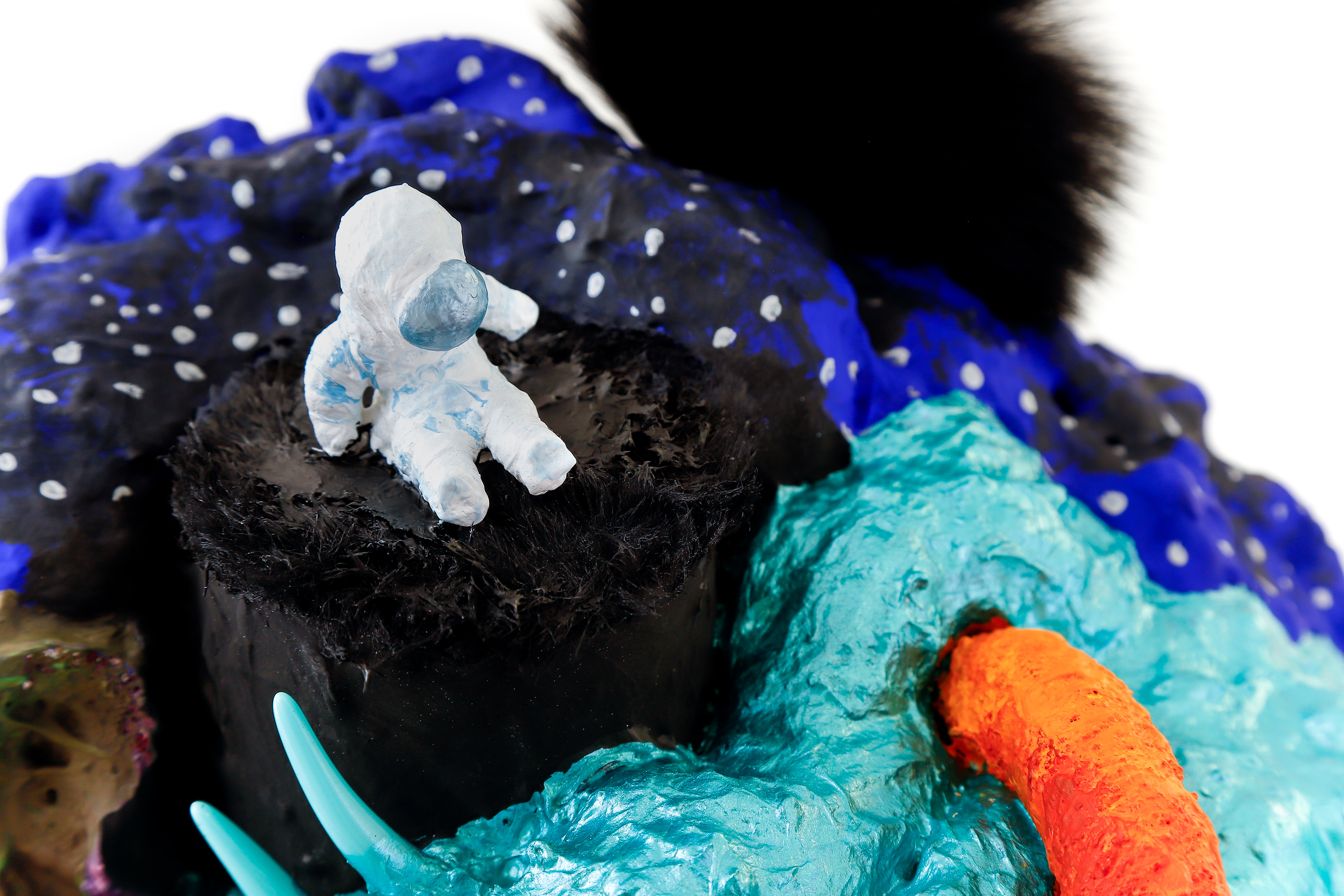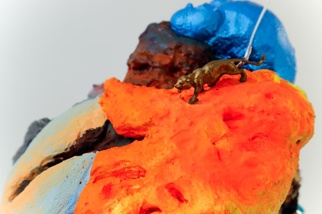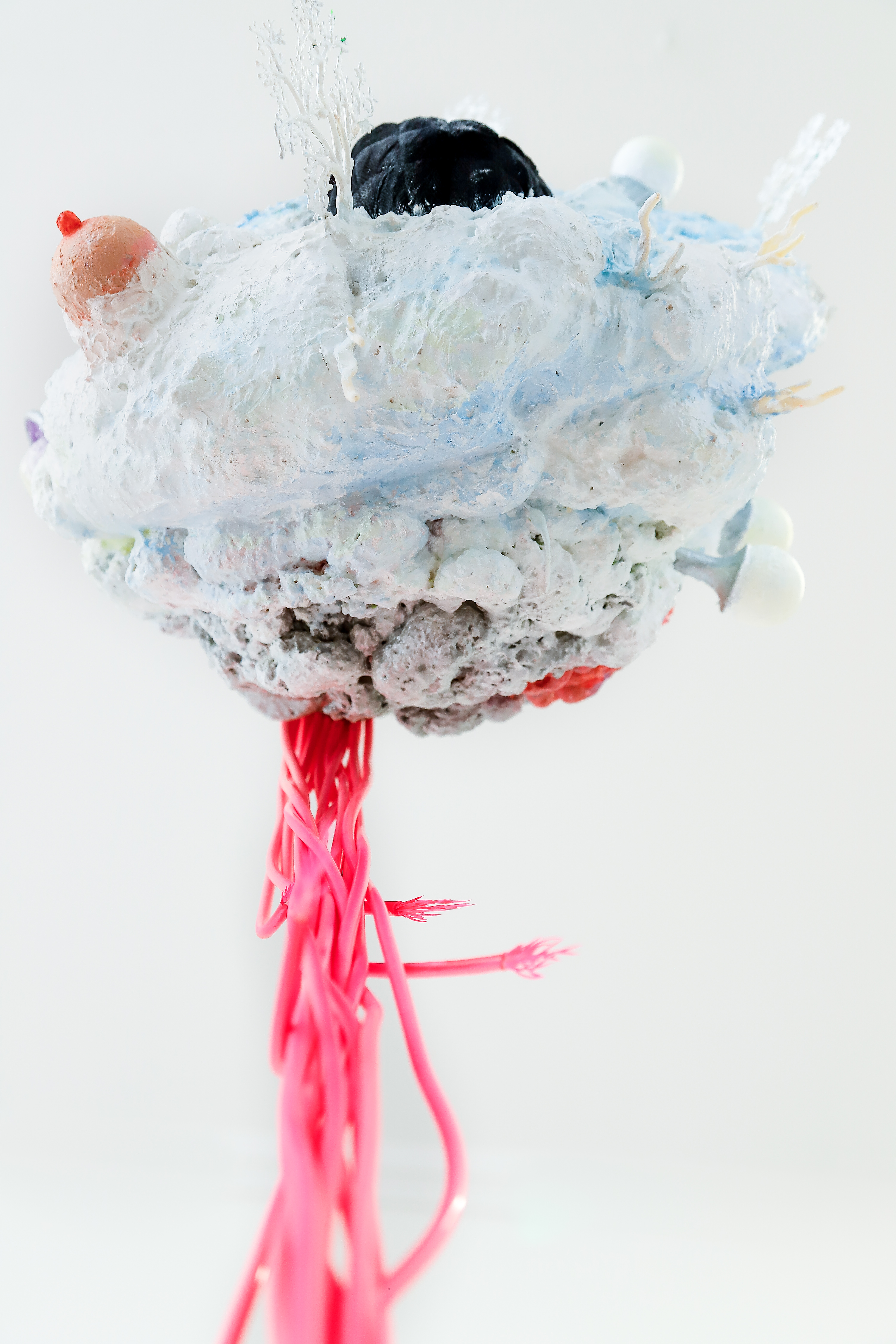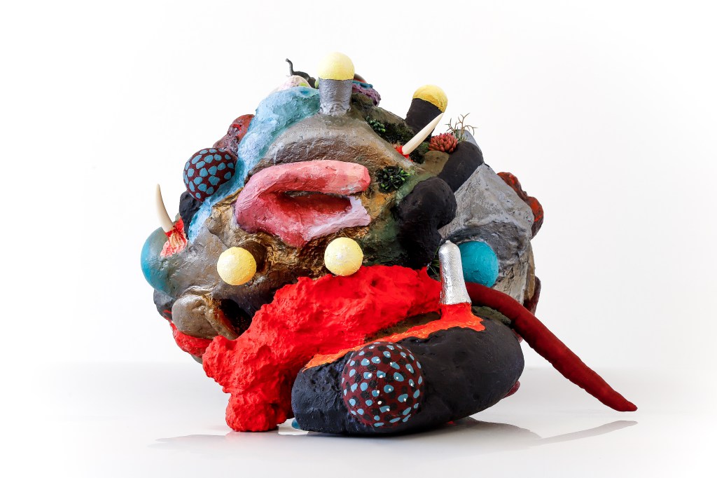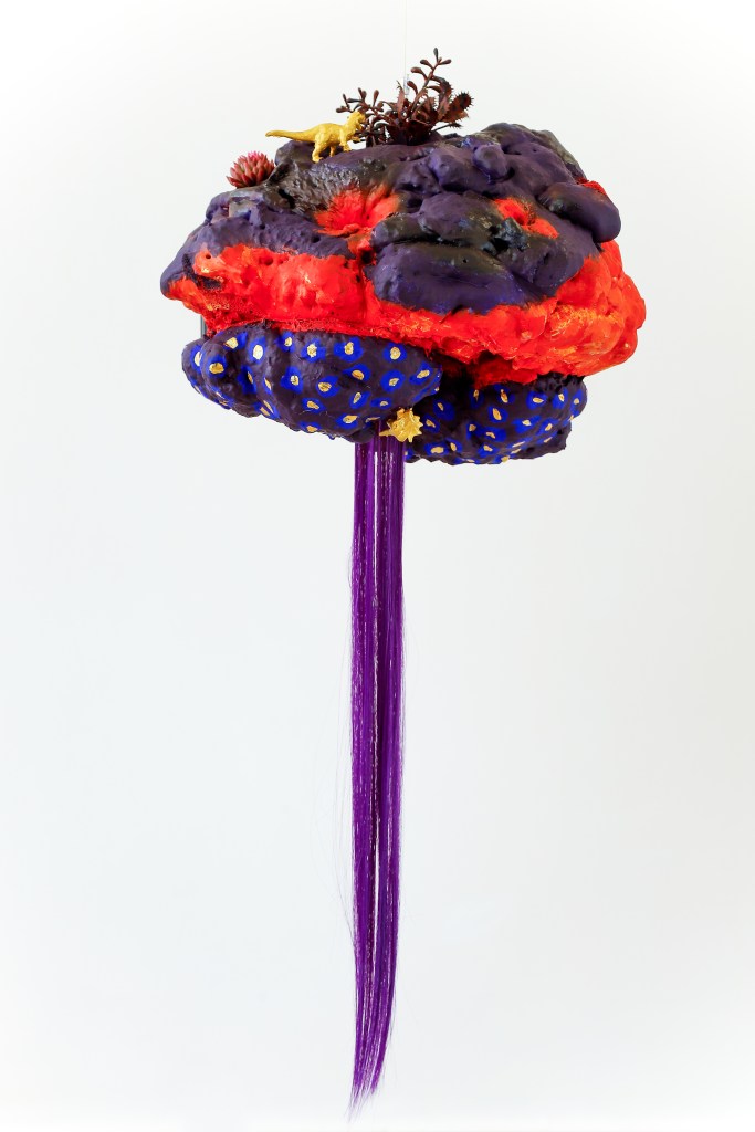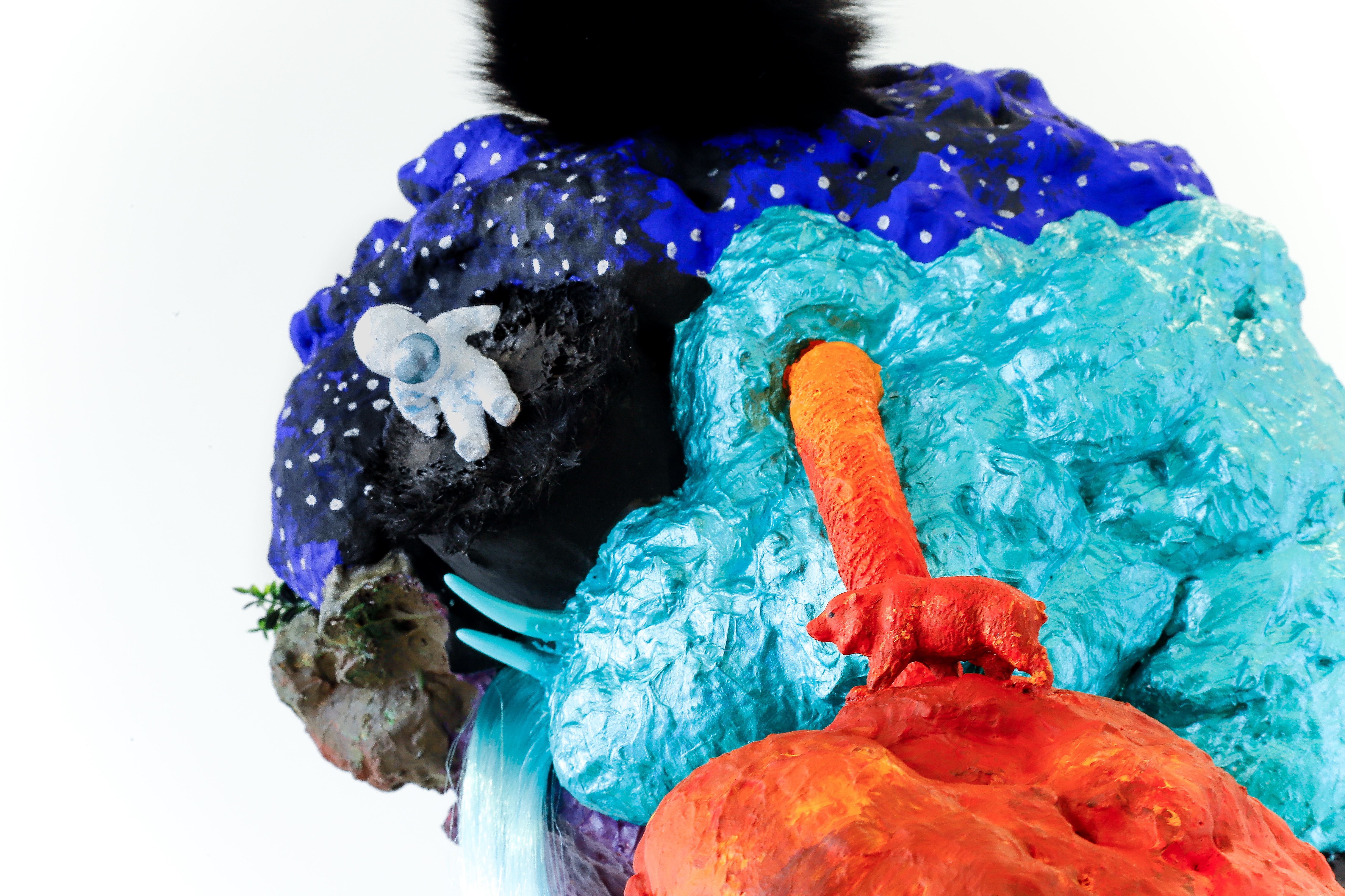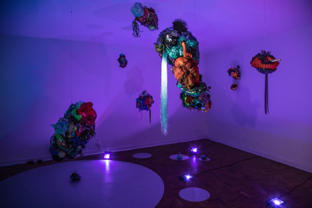 espuma expansiva, peças plásticas, tecidos, arames, objetos, pintura acrílica