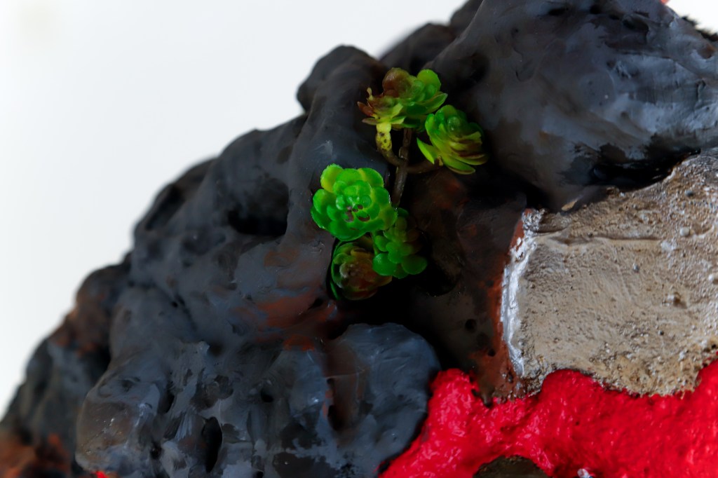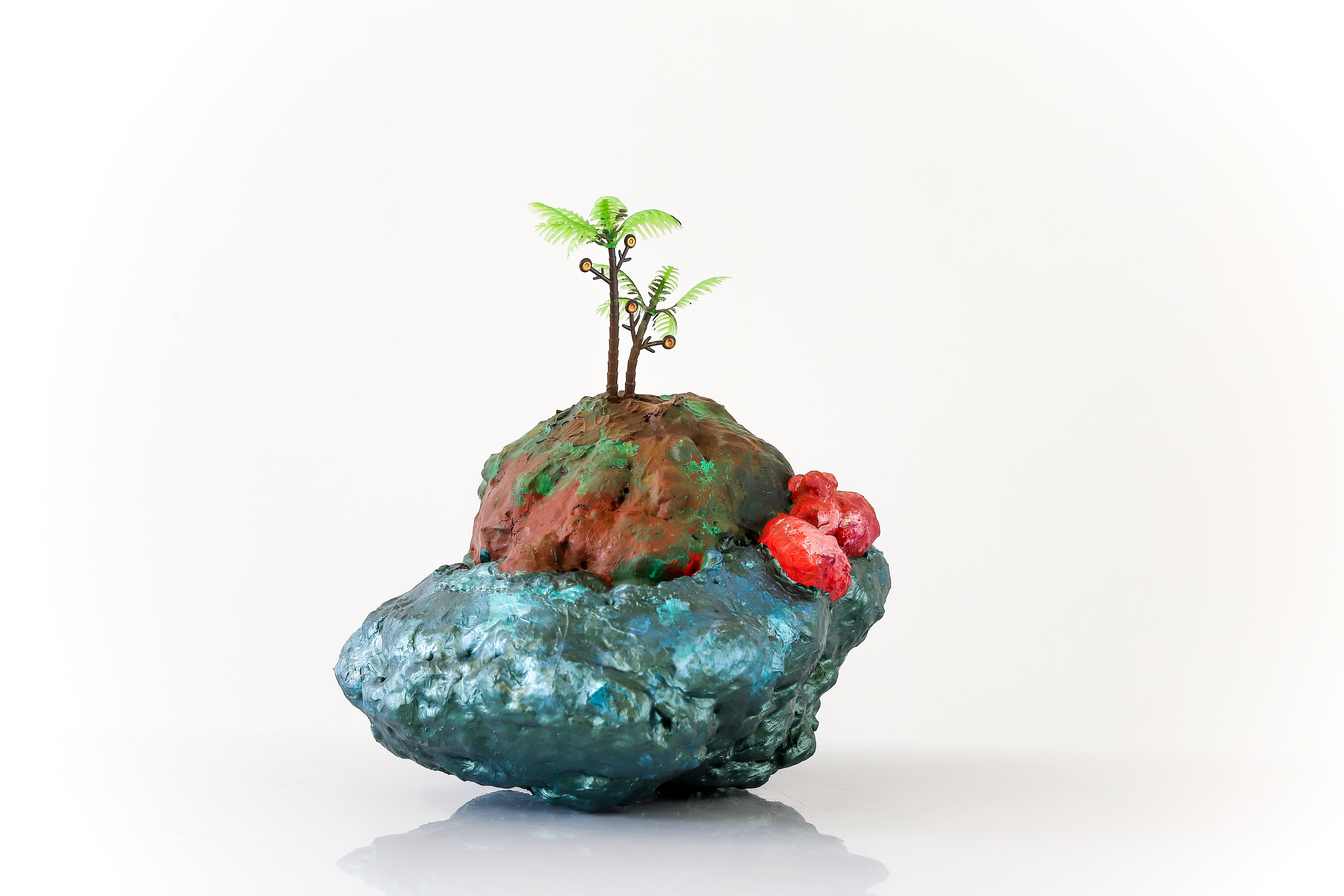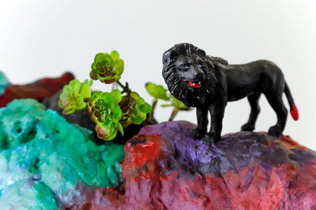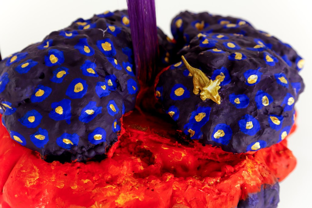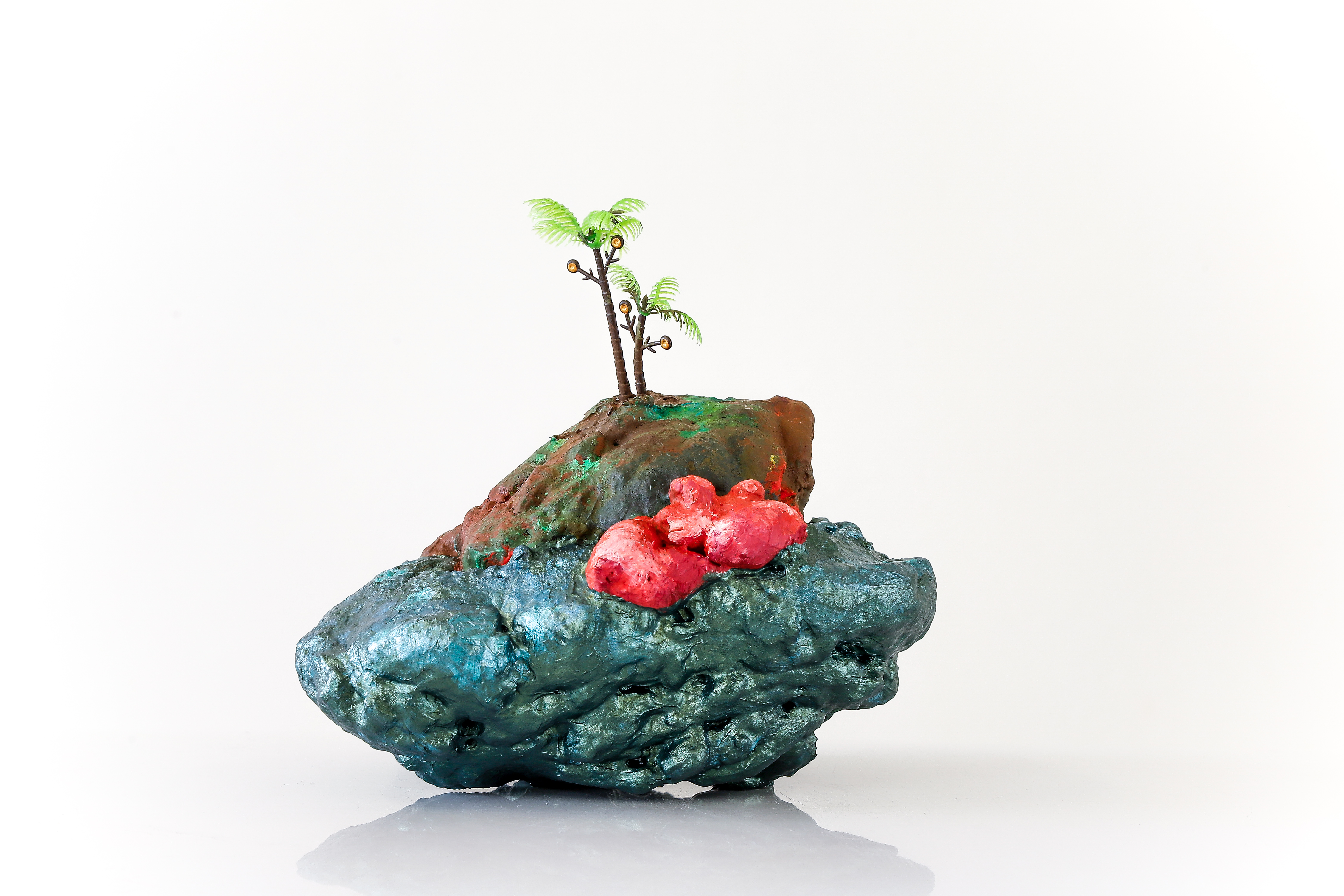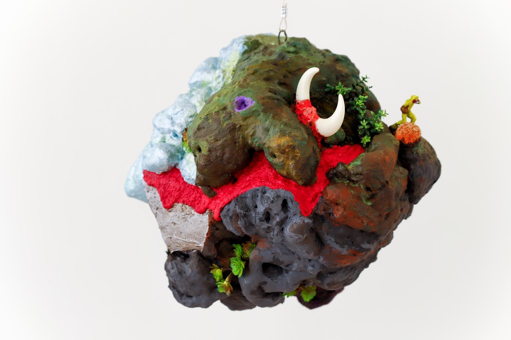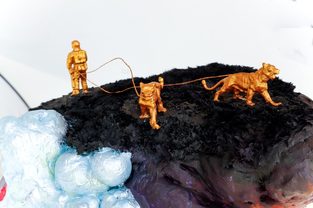 espuma expansiva, peças plásticas, tecidos, arames, objetos, pintura acrílica