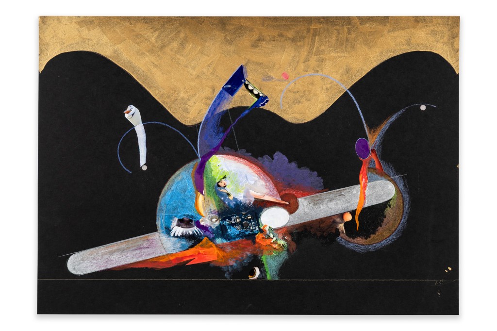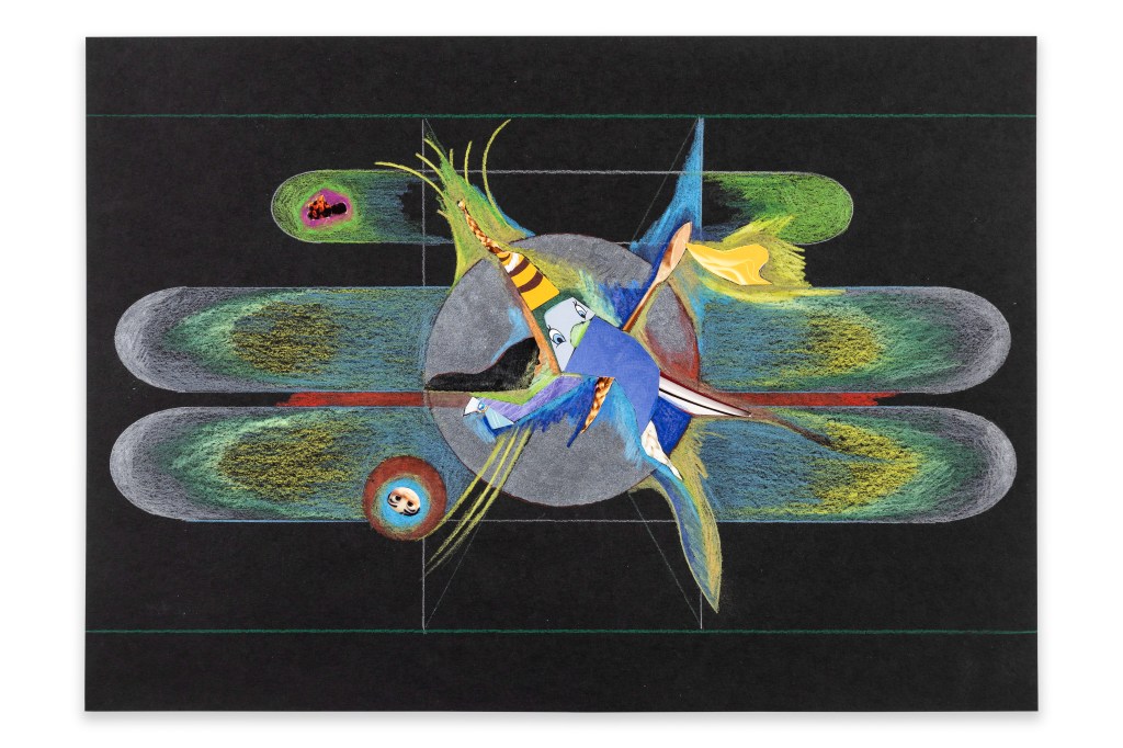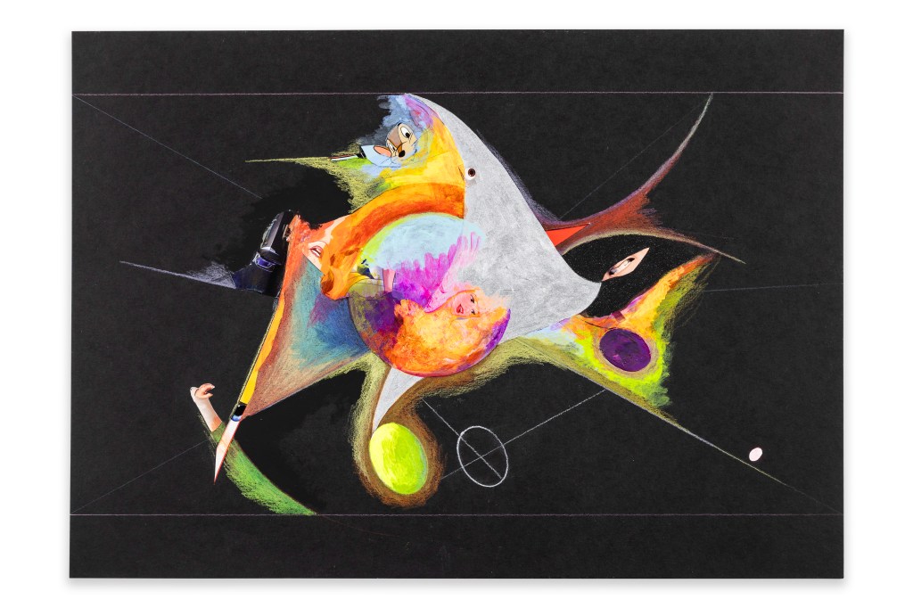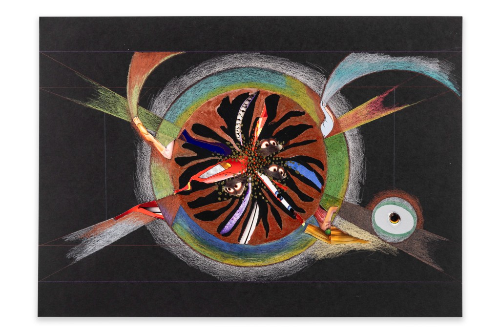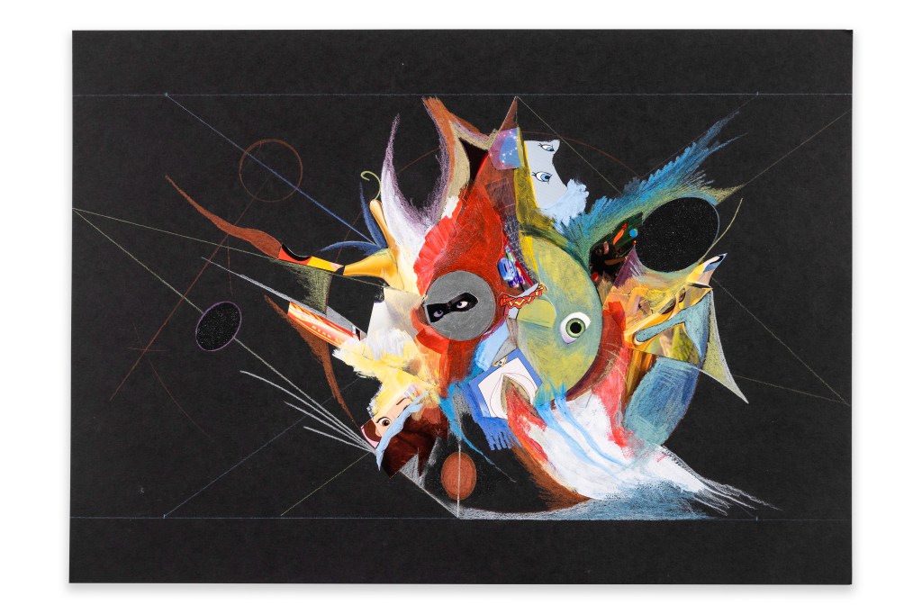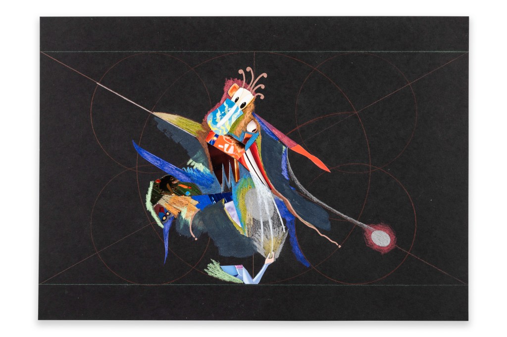 Os fragmentos instauram novas relações visuais e simbólicas, transformando personagens da cultura de massa em arquétipos em trânsito que, reconfigurados em constelações sobre papel hahnemhule preto, adquirem dimensão cósmica e mítica.