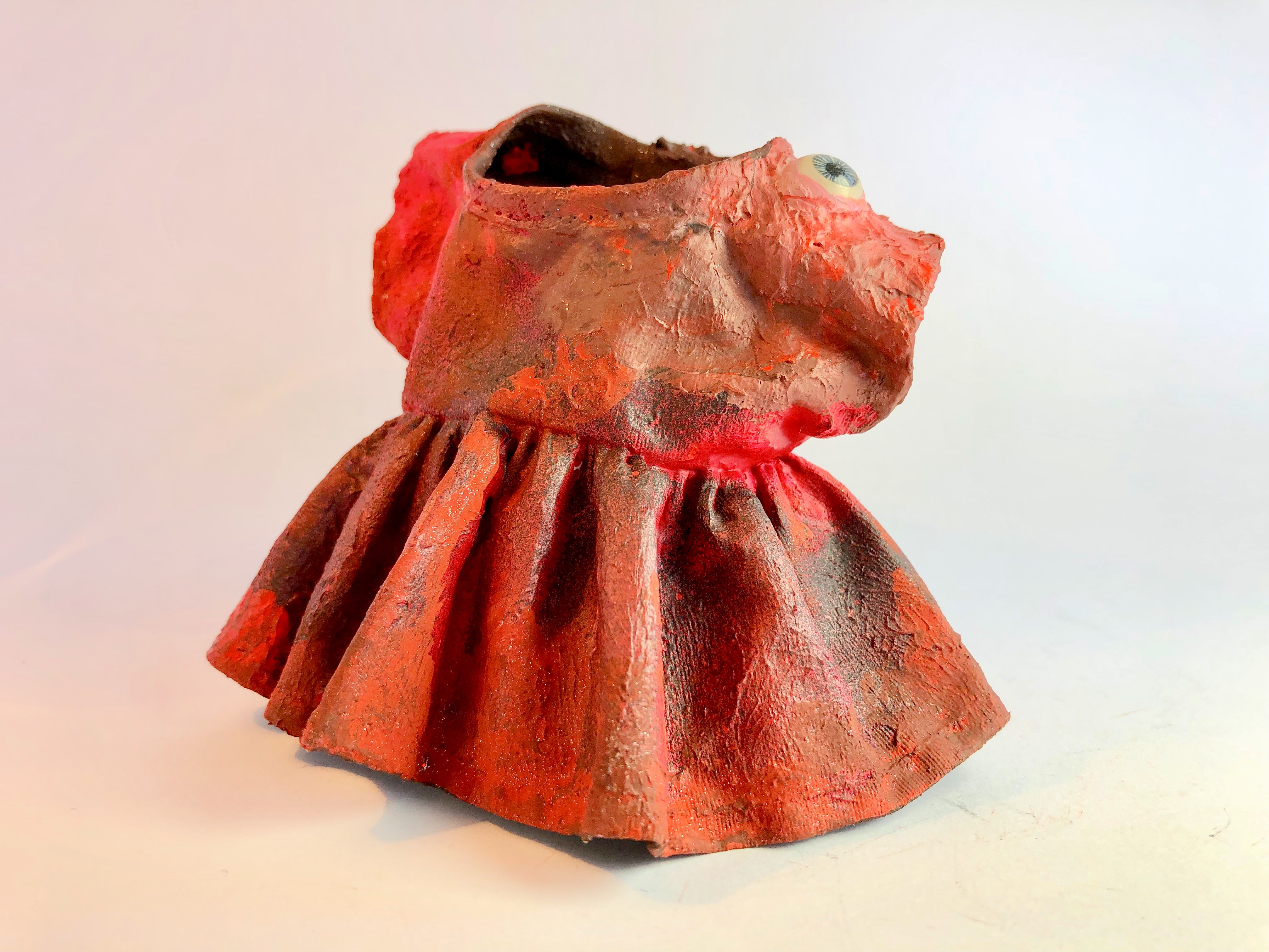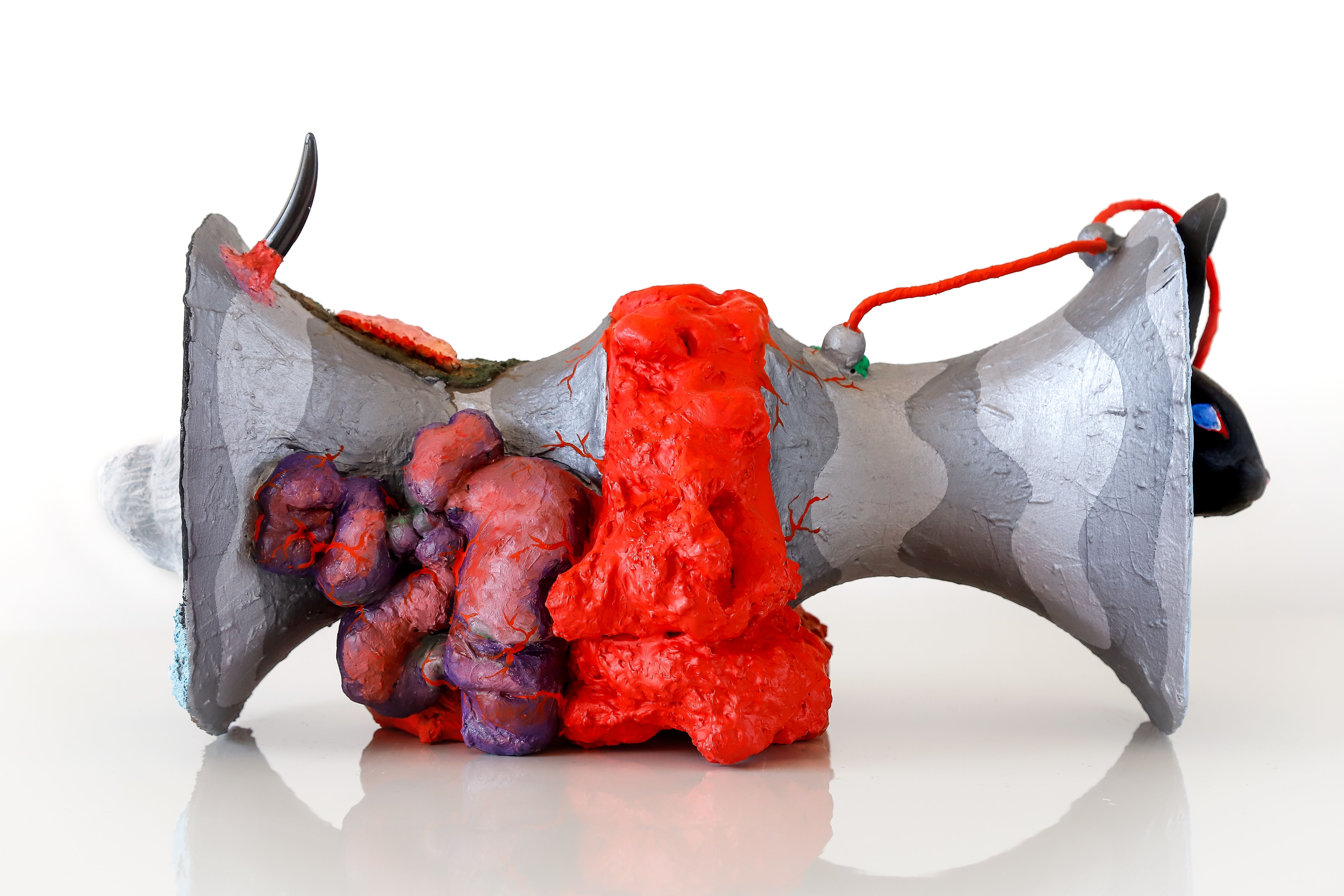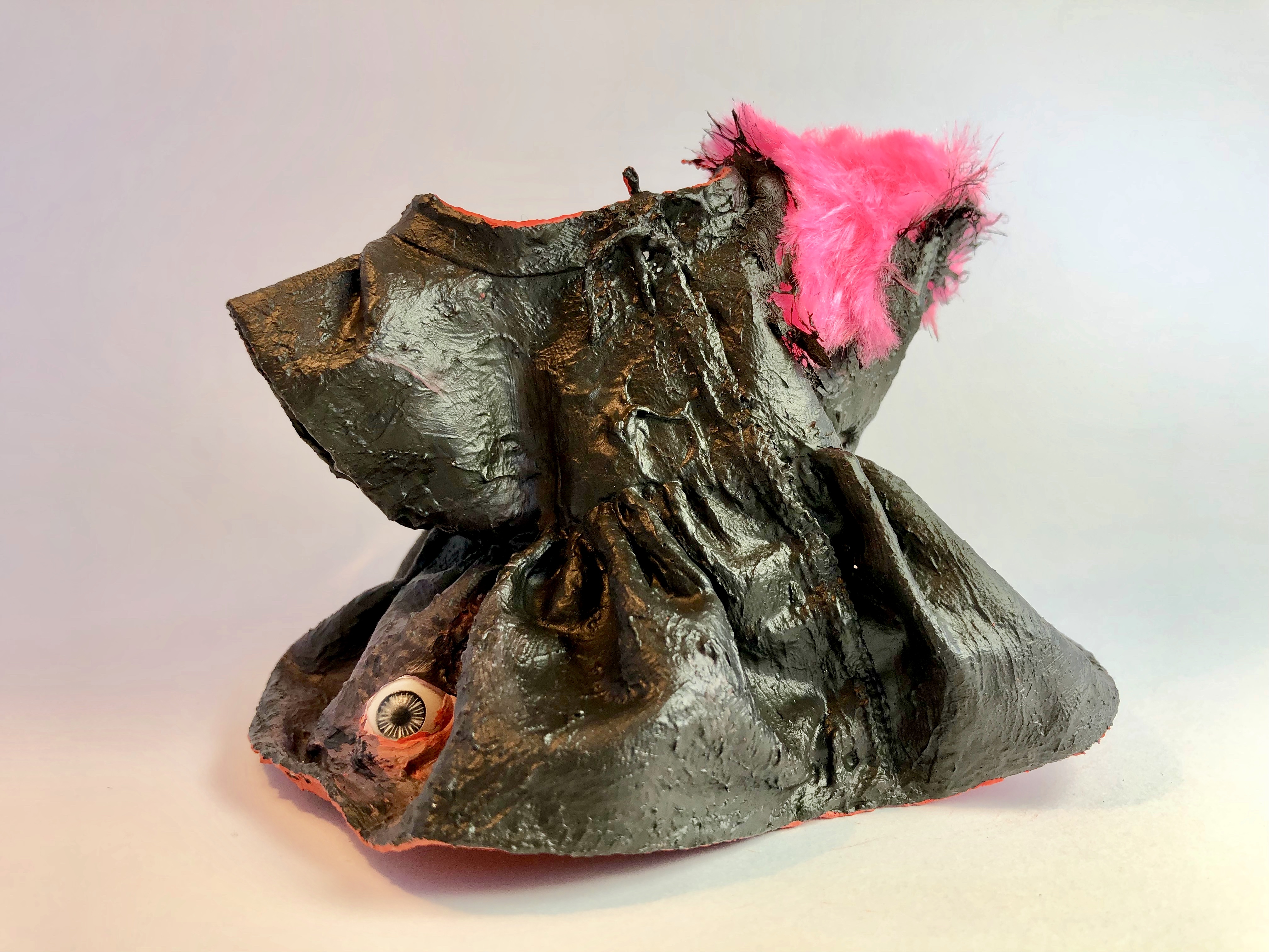 tecido, peças plásticas, massa plástica, areia, resina, arame, cordão, cola, pelo sintético, tintaacrílica e pva, 81 x 50 x 44 cm. ( 2017 )