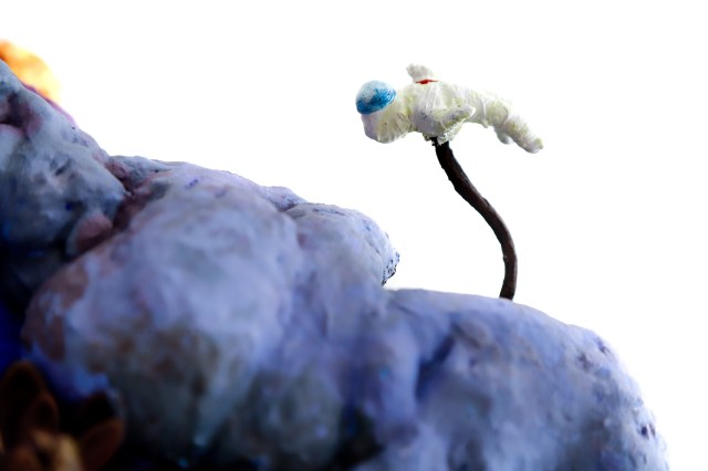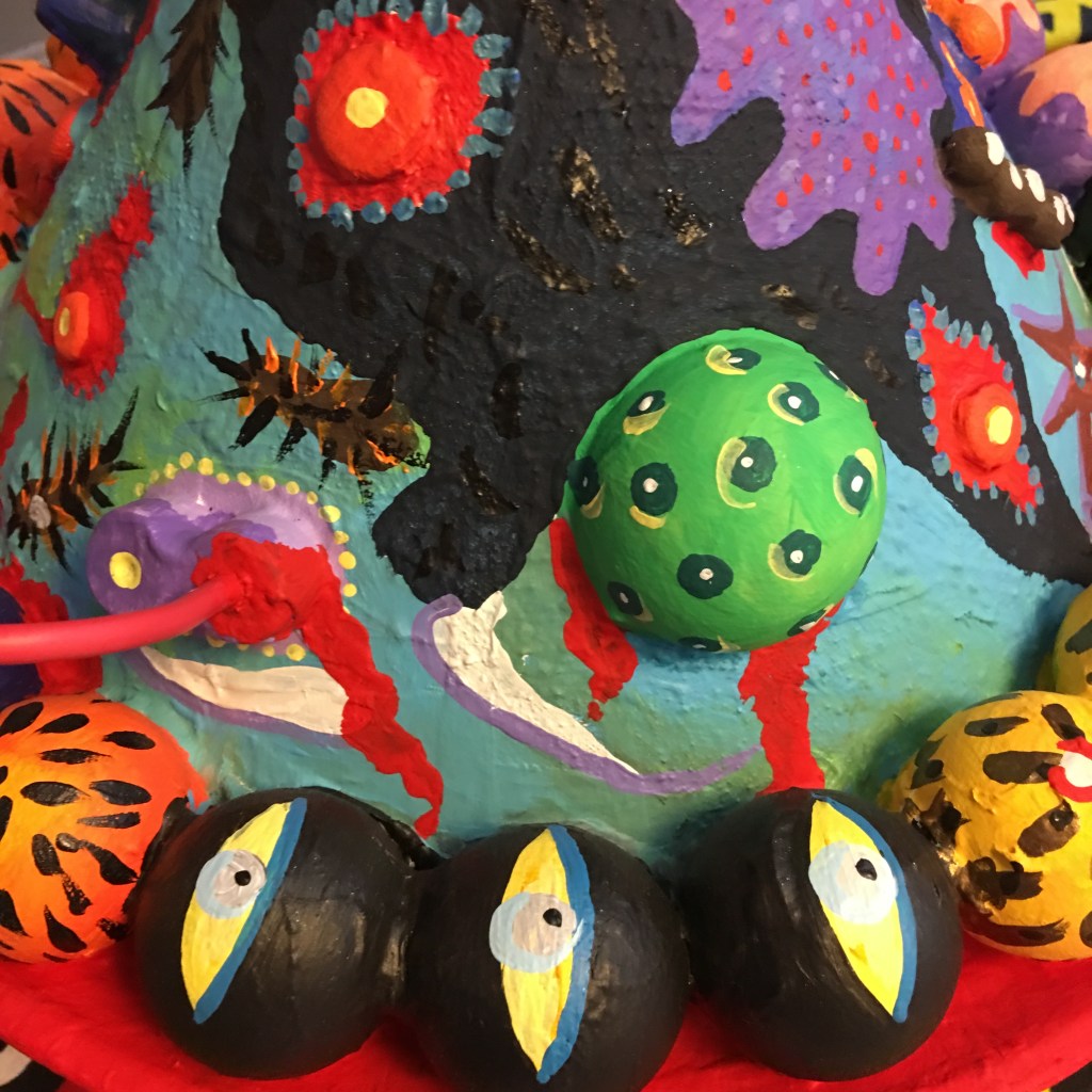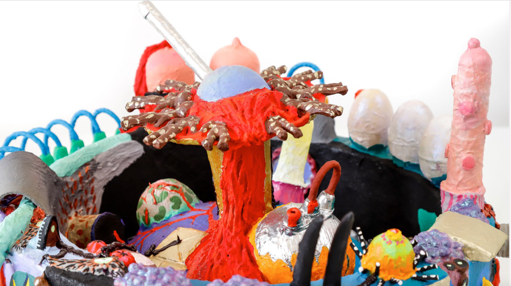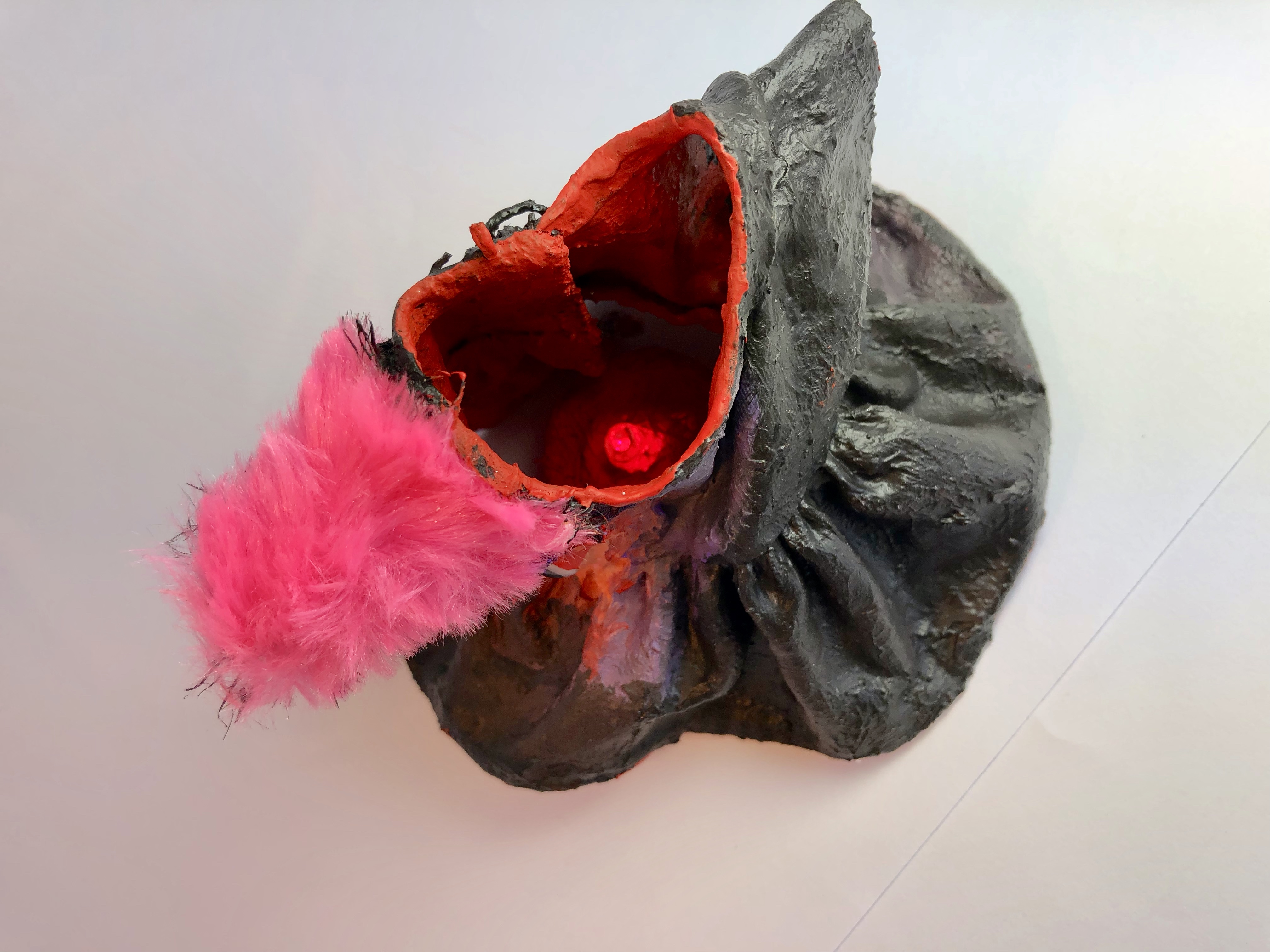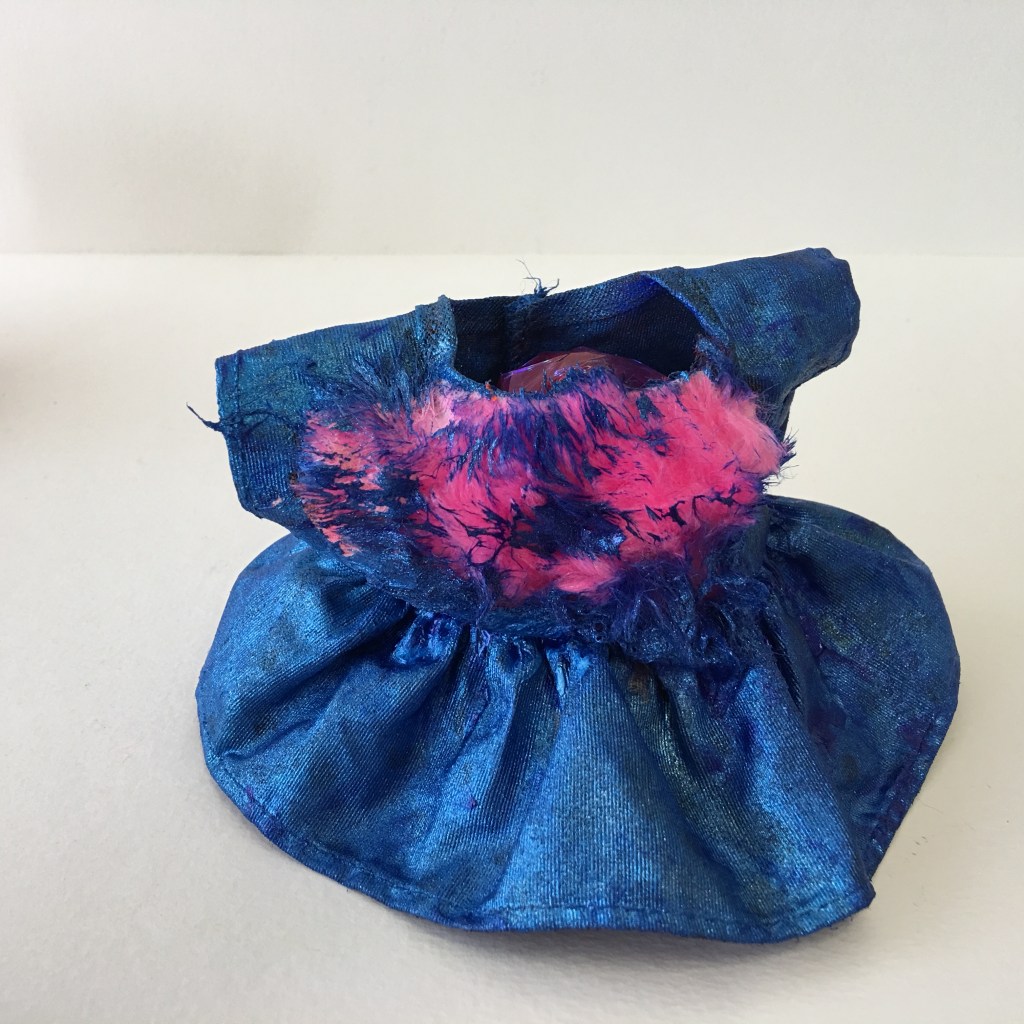 tecido, peças plásticas, massa plástica, areia, resina, arame, cordão, cola, pelo sintético, tintaacrílica e pva, 81 x 50 x 44 cm. ( 2017 )
