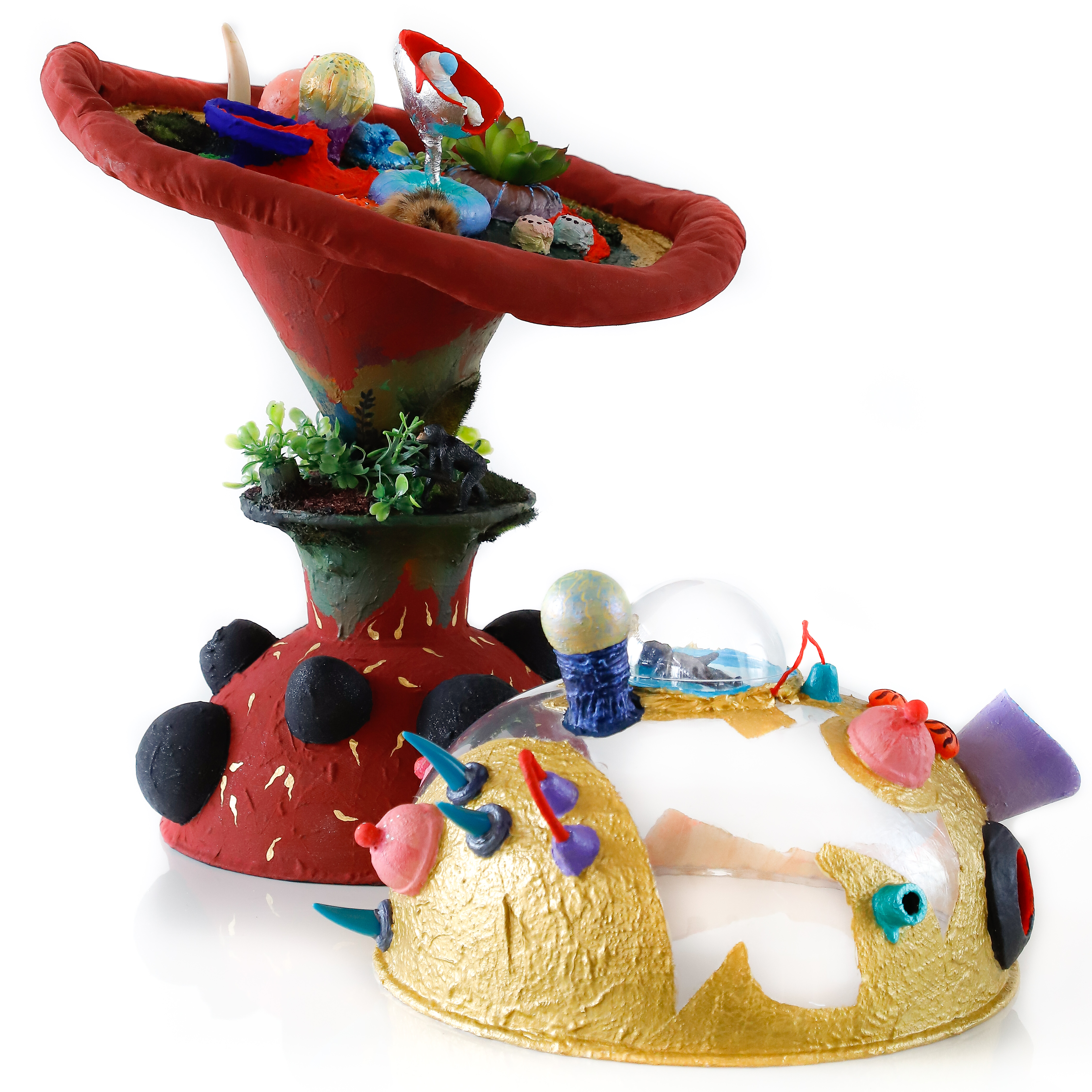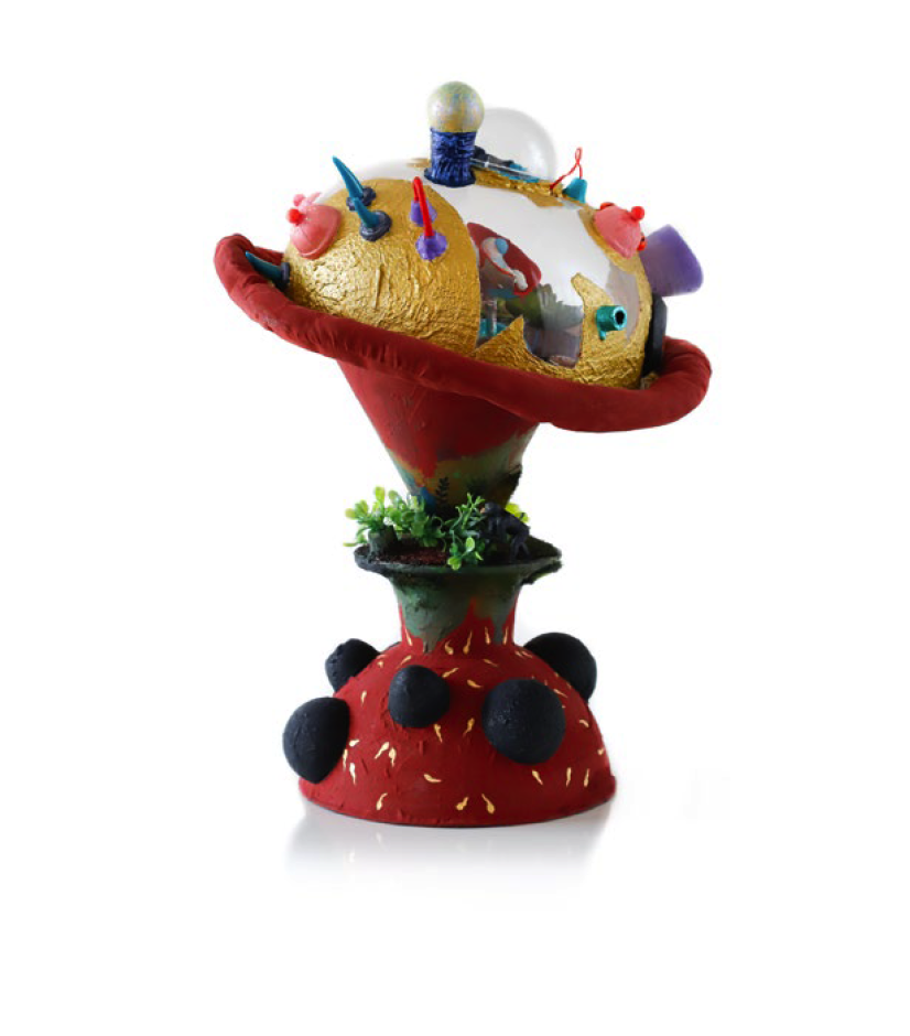 tecido, peças plásticas, musgo sintético, massa, plástica, resina, arame, cordão, cola, tinta acrílica, tinta spray, espuma de poliuretano e pva, 28 x 50 x 33 cm ( 2018 )
