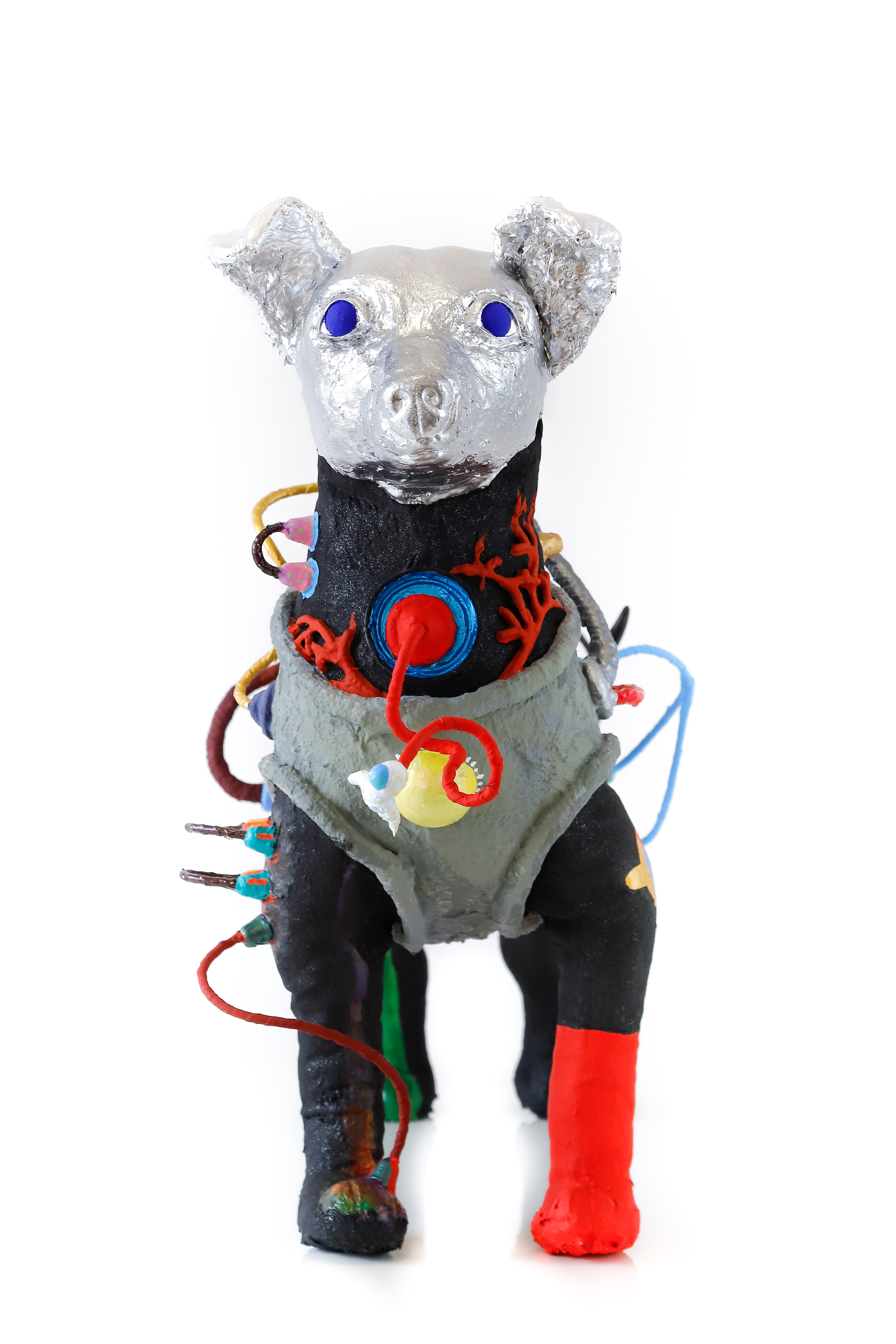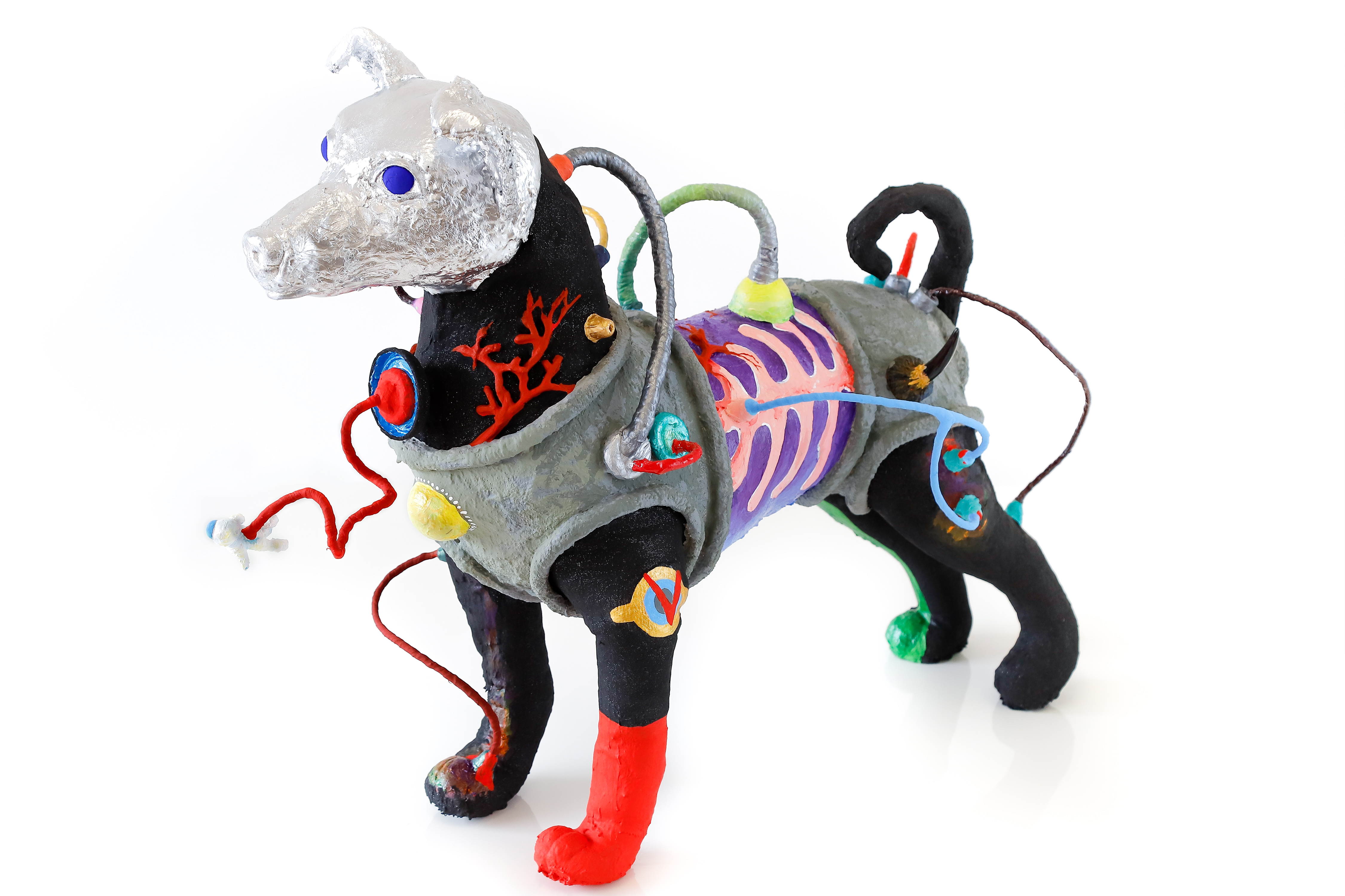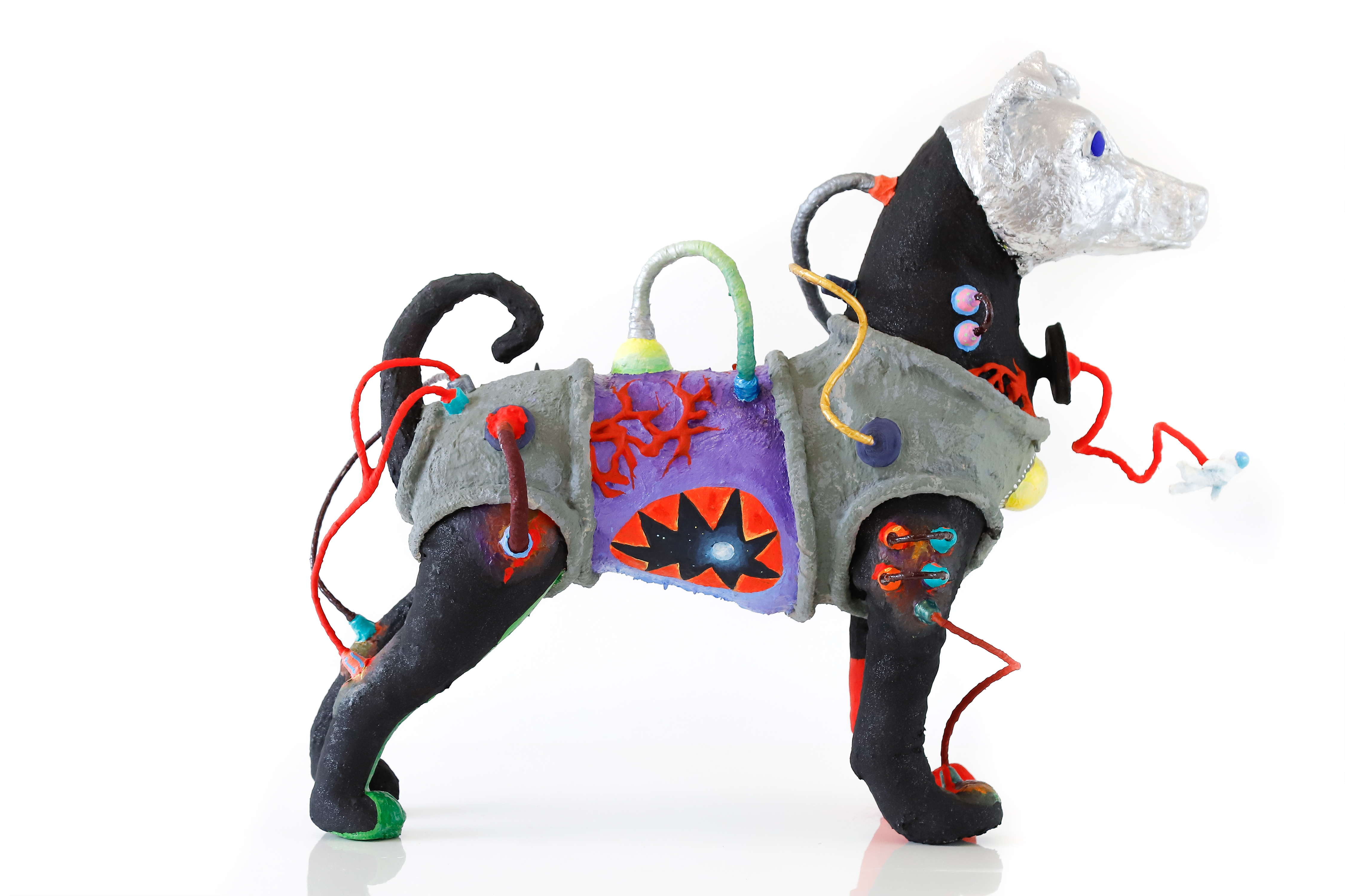 cachorro de pelúcia, peças plásticas, massa, plástica, arame, cola, tinta acrílica e pva 54 x 27 x 60 cm. ( 2017 )