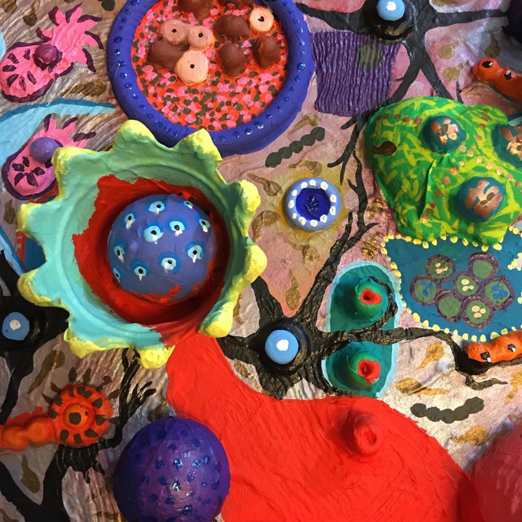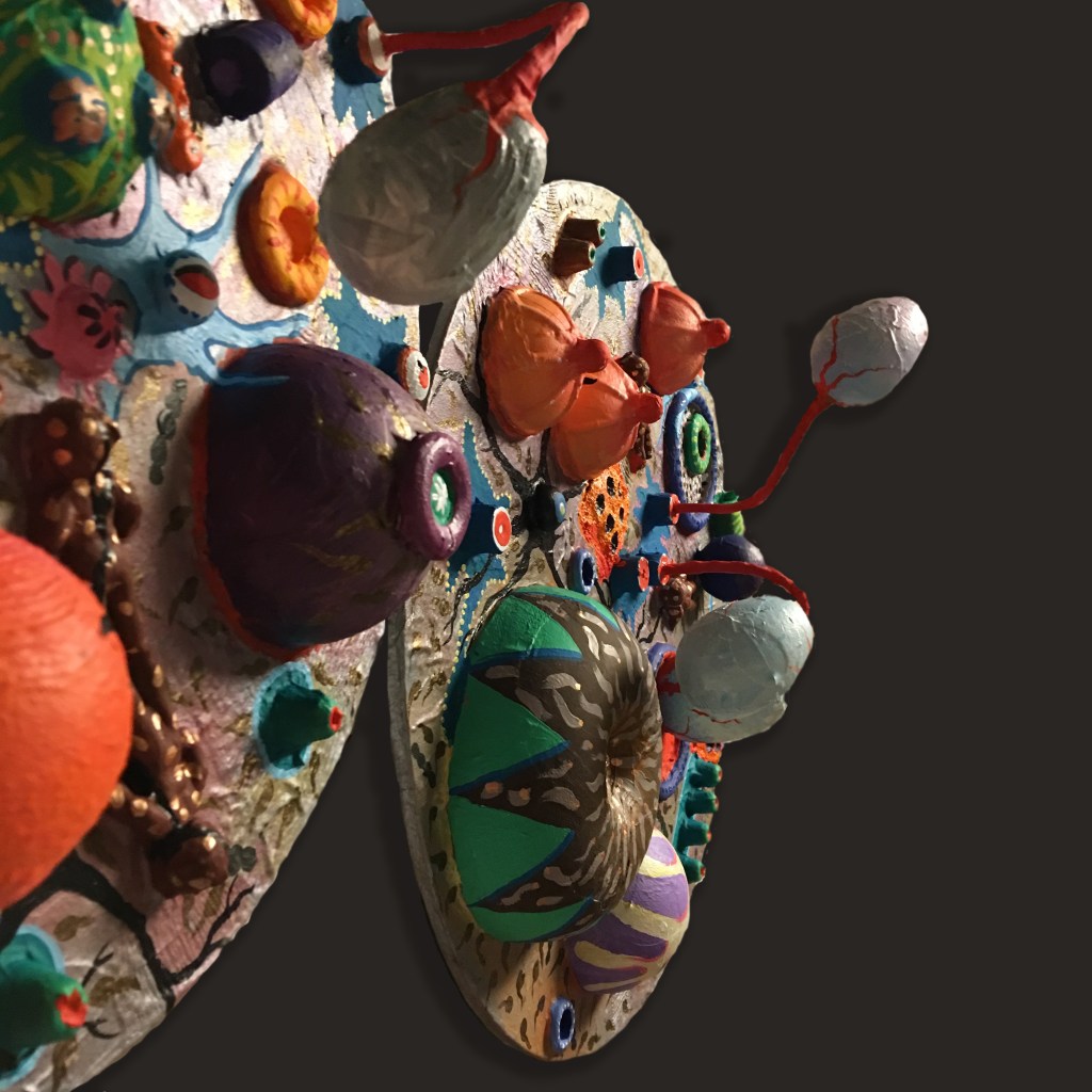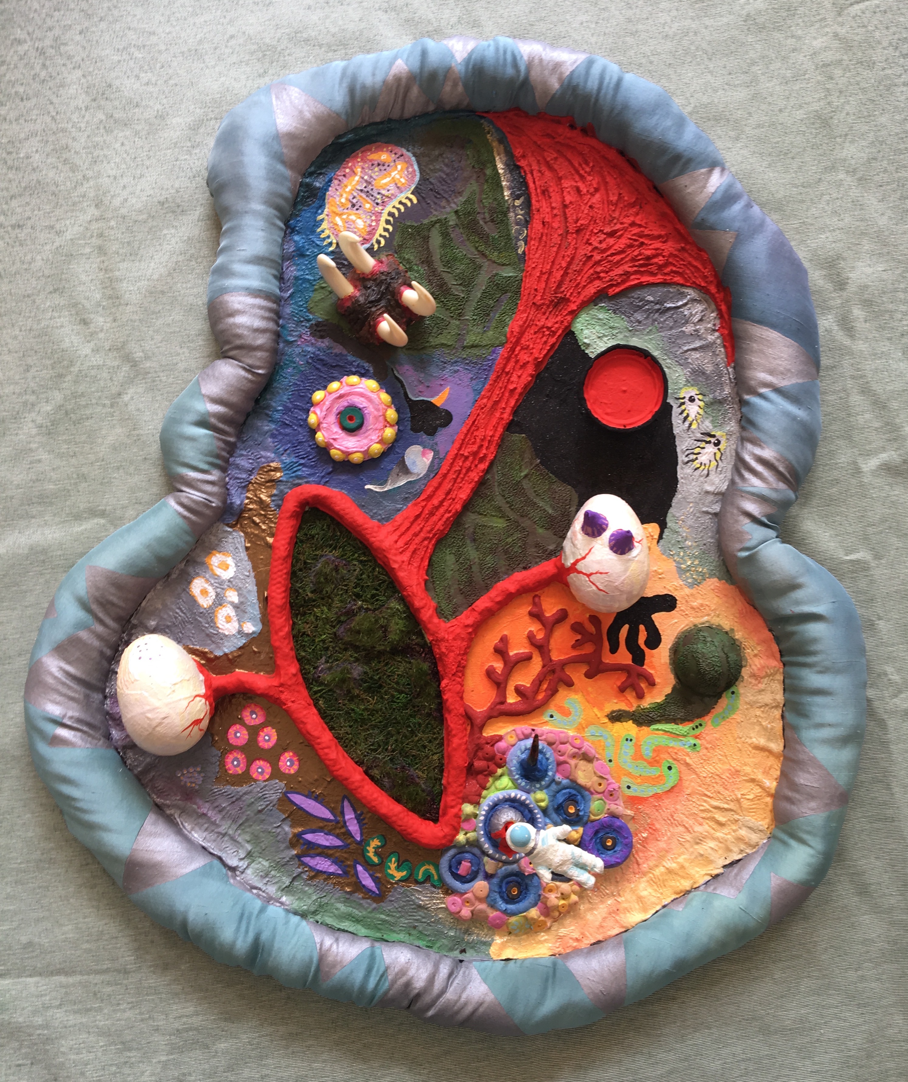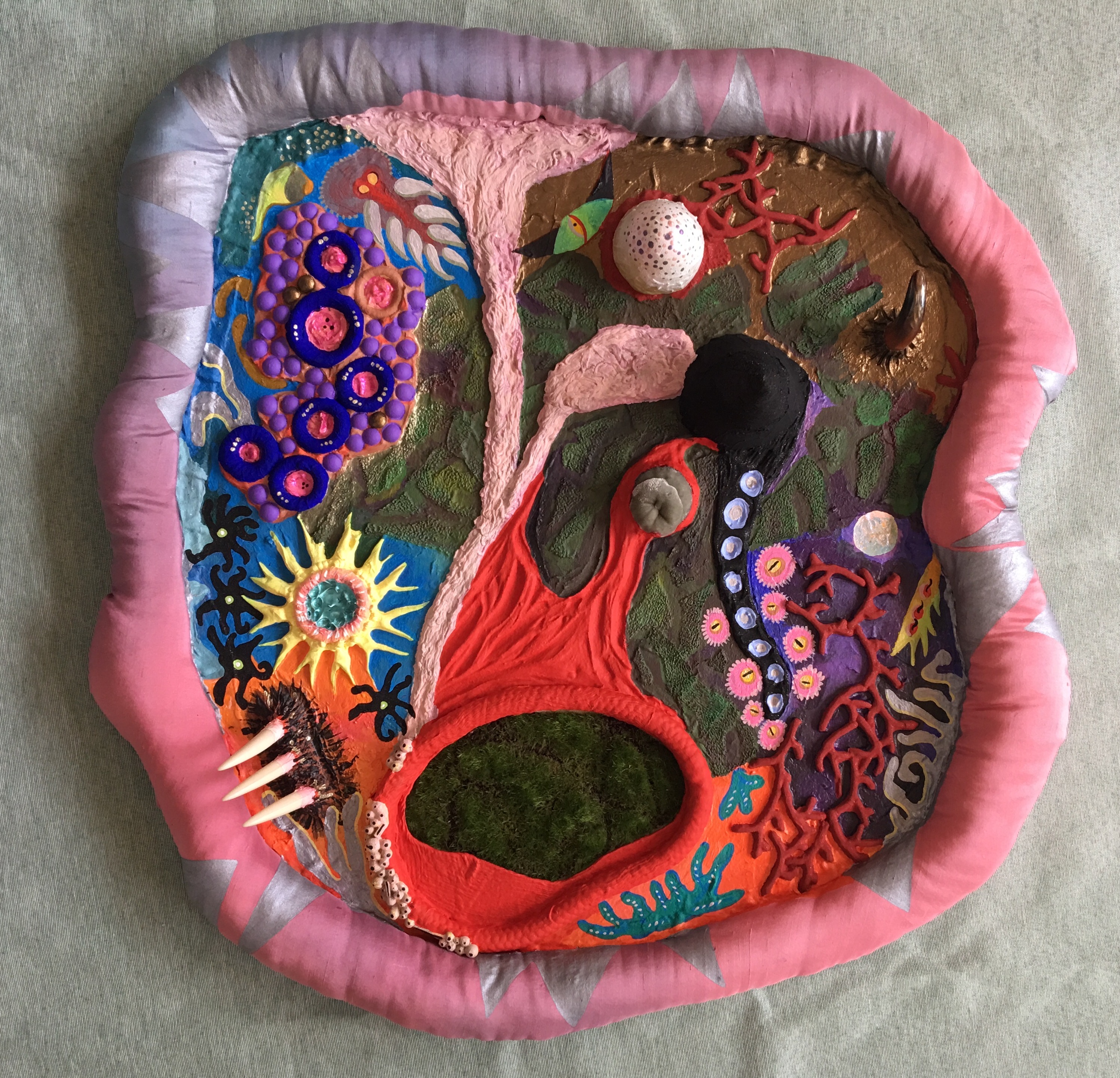 o jardim, pintura em relêvo, objetos e pintura sobre tela recortada ( 2017 )