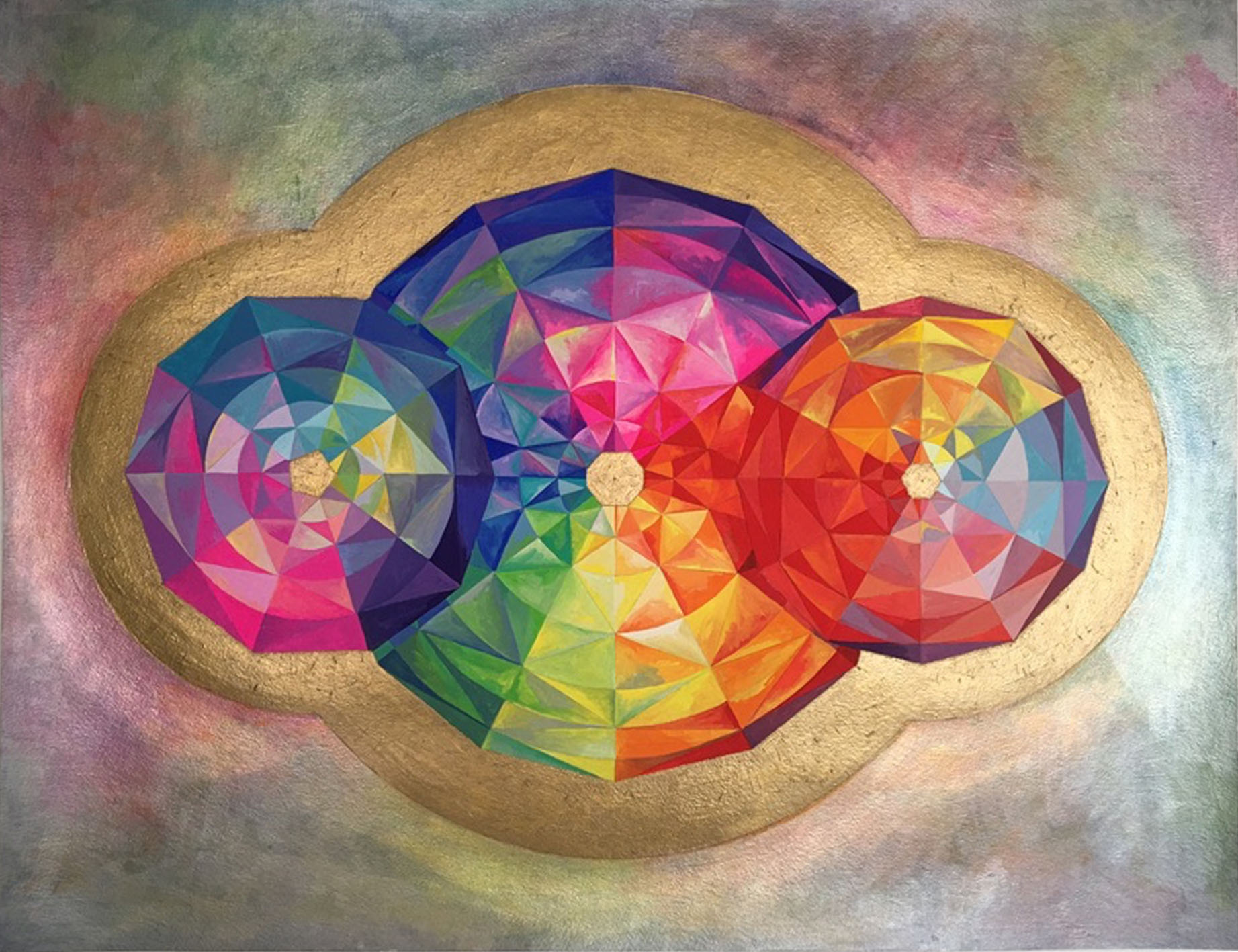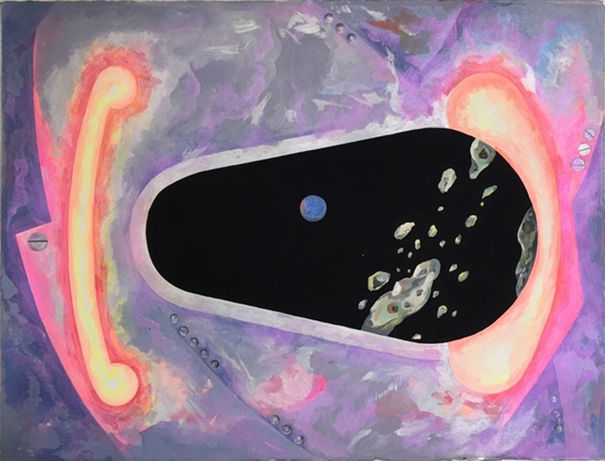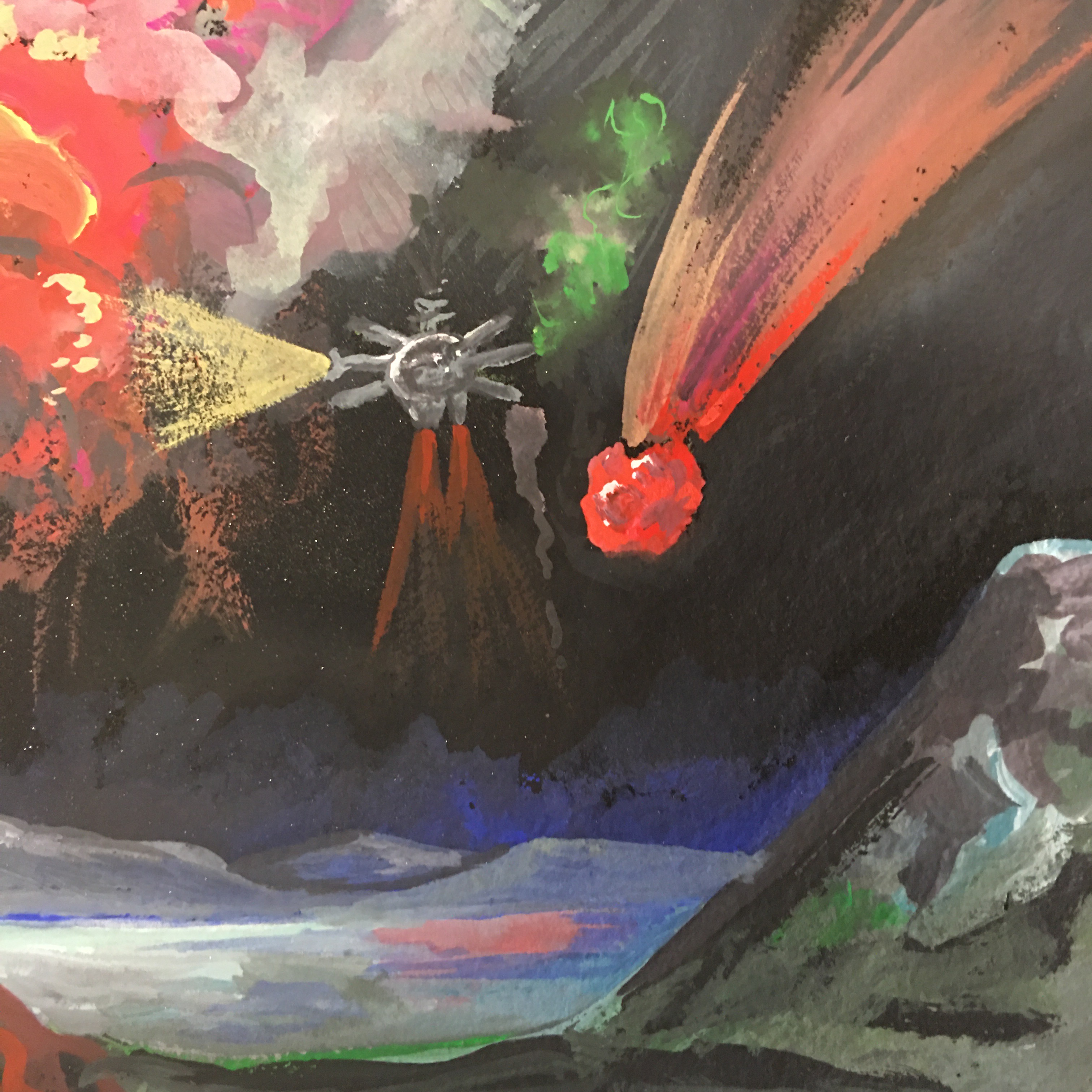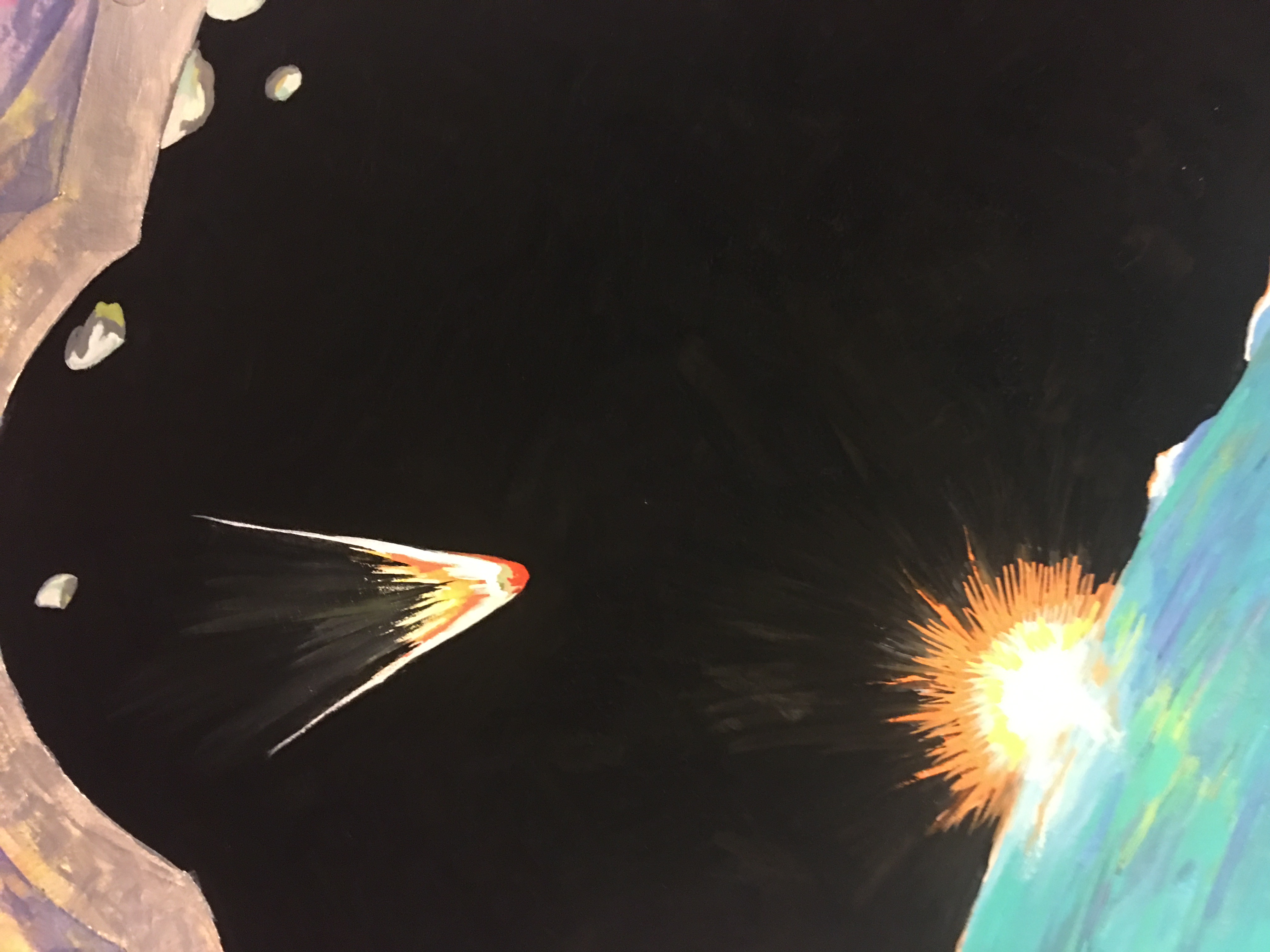 rave na nave 1, 2, 3, guache sobre papel canson, 40 x 40 cm e pintura central 65 x 50 cm
