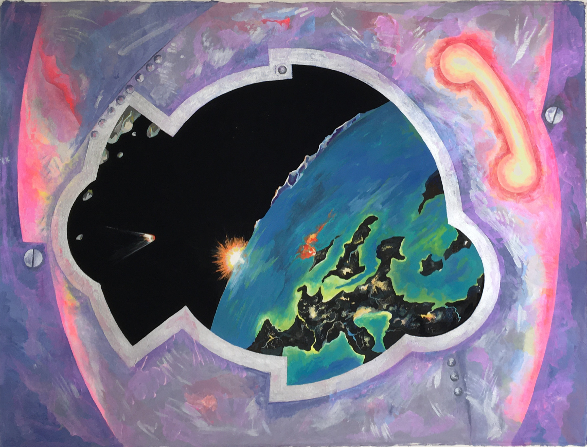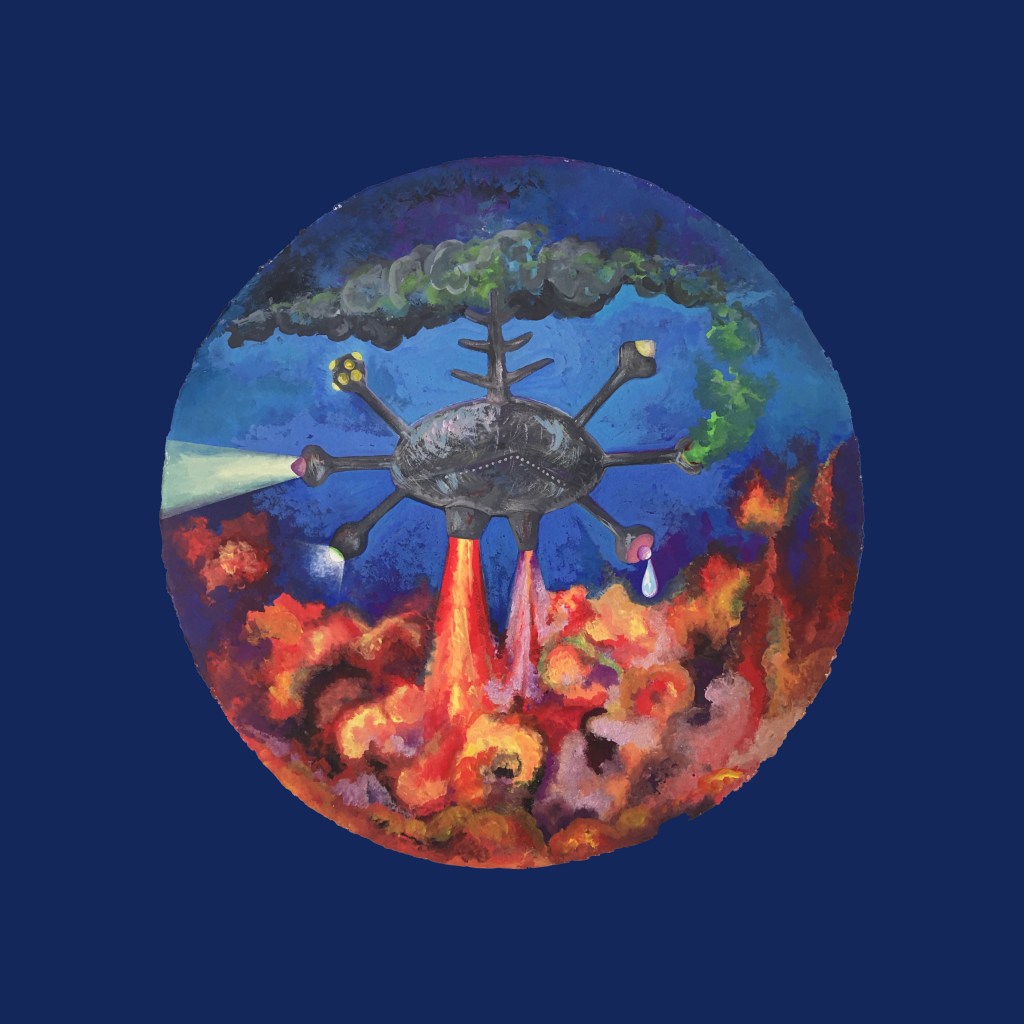 rave na nave, acrílica sobre tela, 140 x 140 cm ( 2020 )