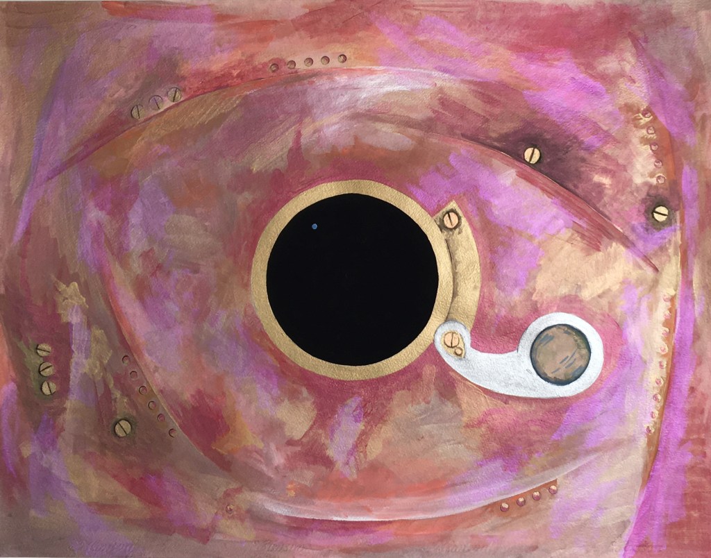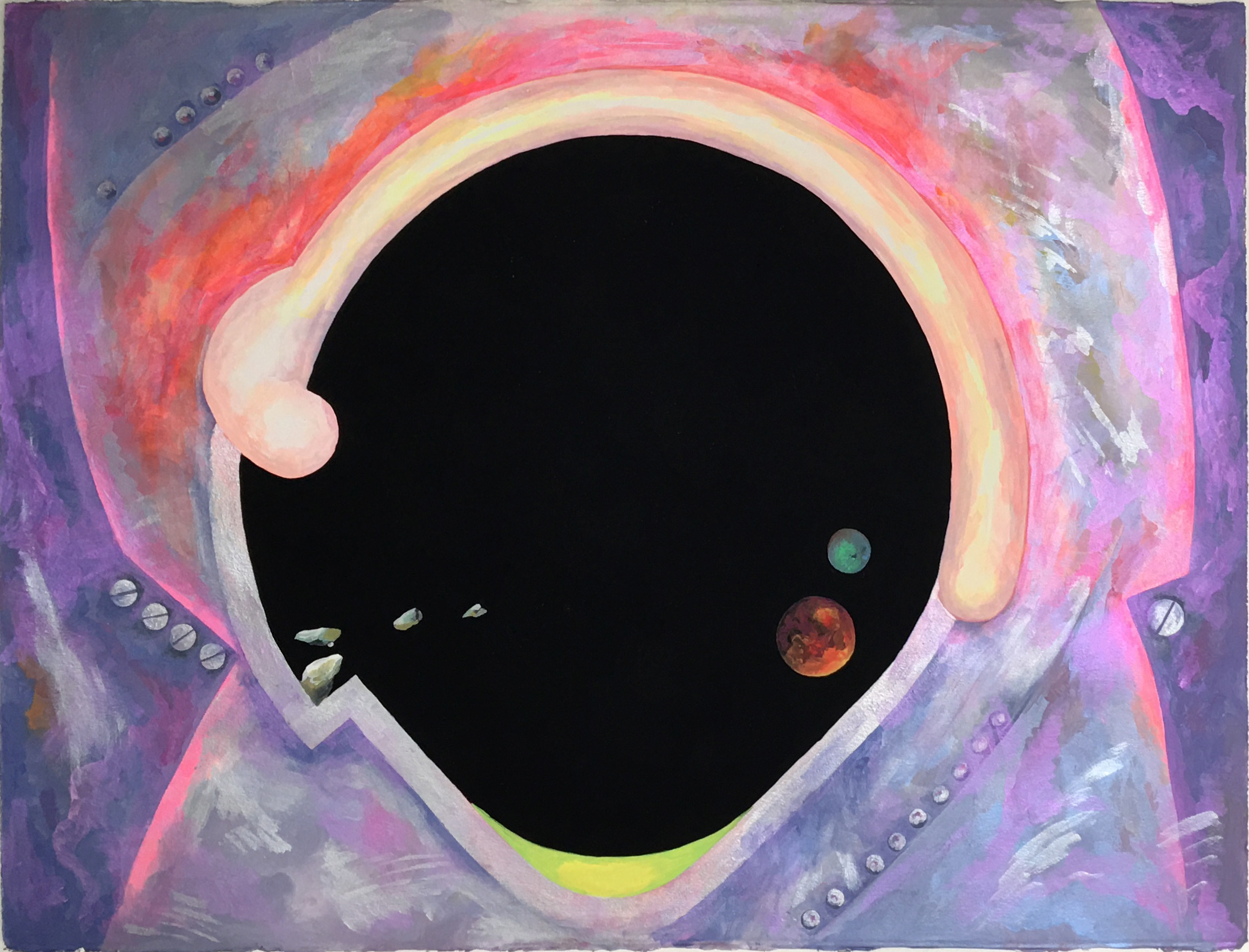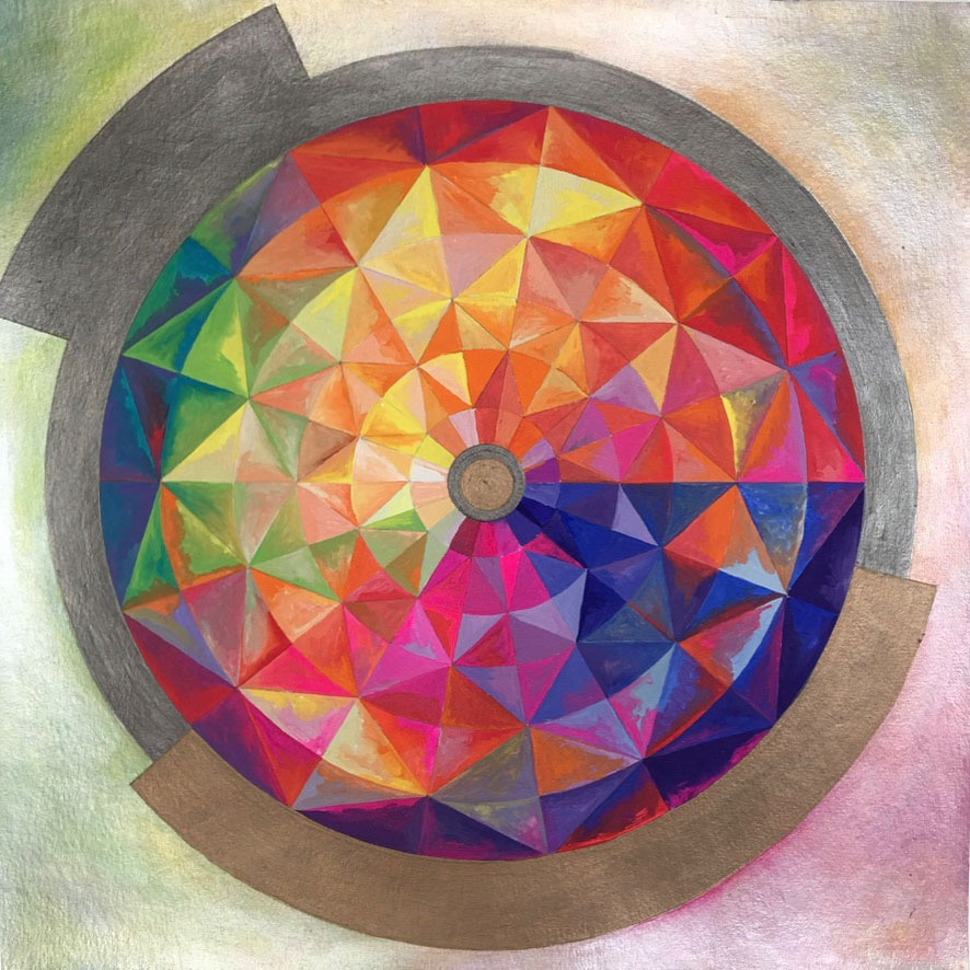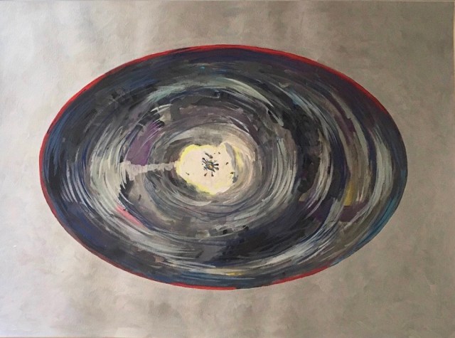 a fuga 2, guache sobre papel, 30 cm diâmetro ( 2020 )