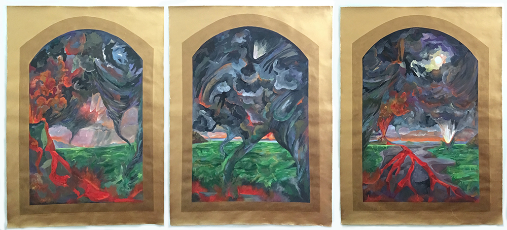 uma vista em três tempos, tríptico, guache sobre papel canson, 70 x 100 cm ( 2020 )