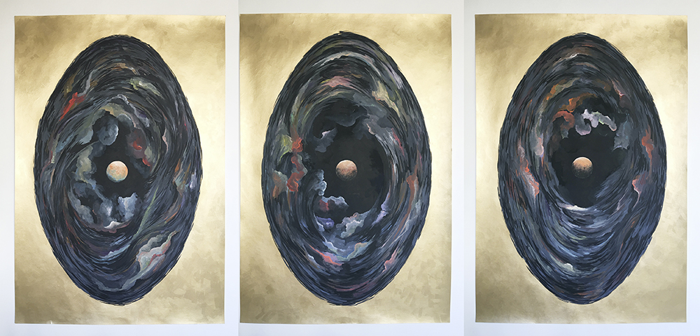 outra vista do céu, tríptico, guache sobre papel canson 110 x 74 cm ( 2020 )