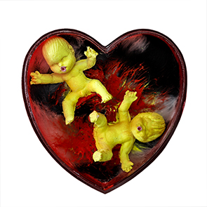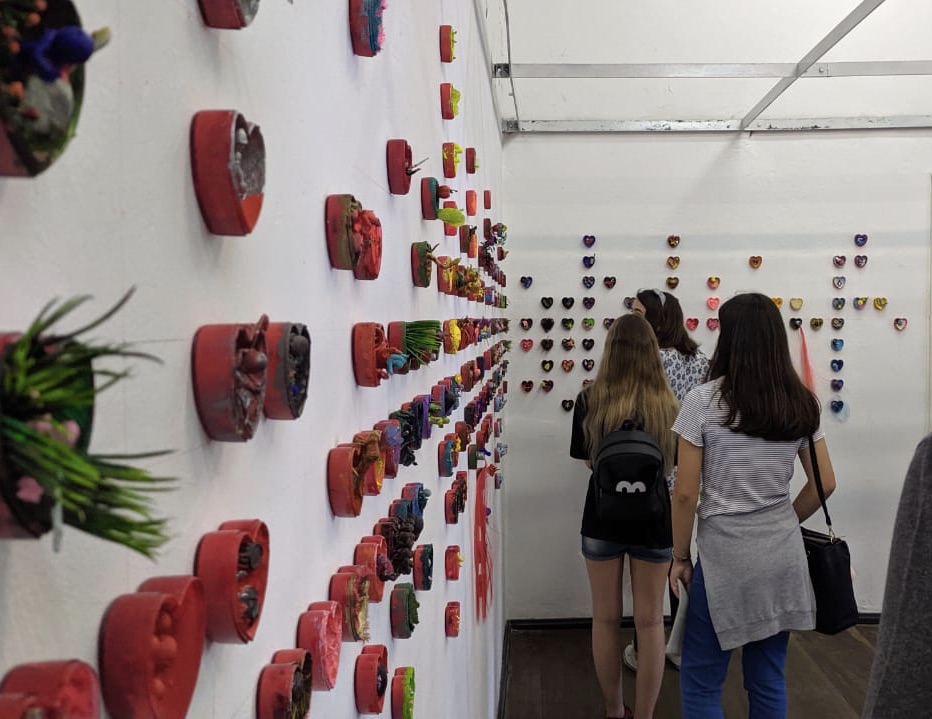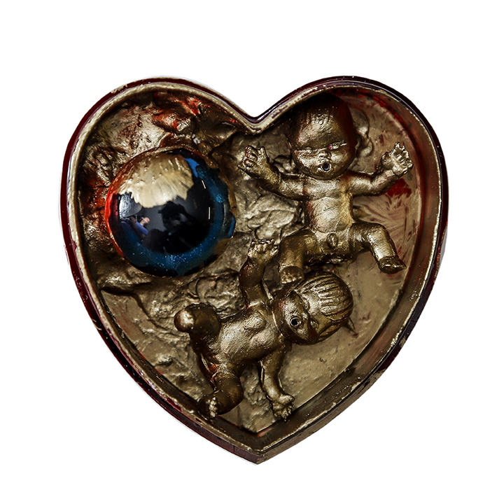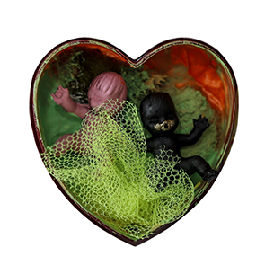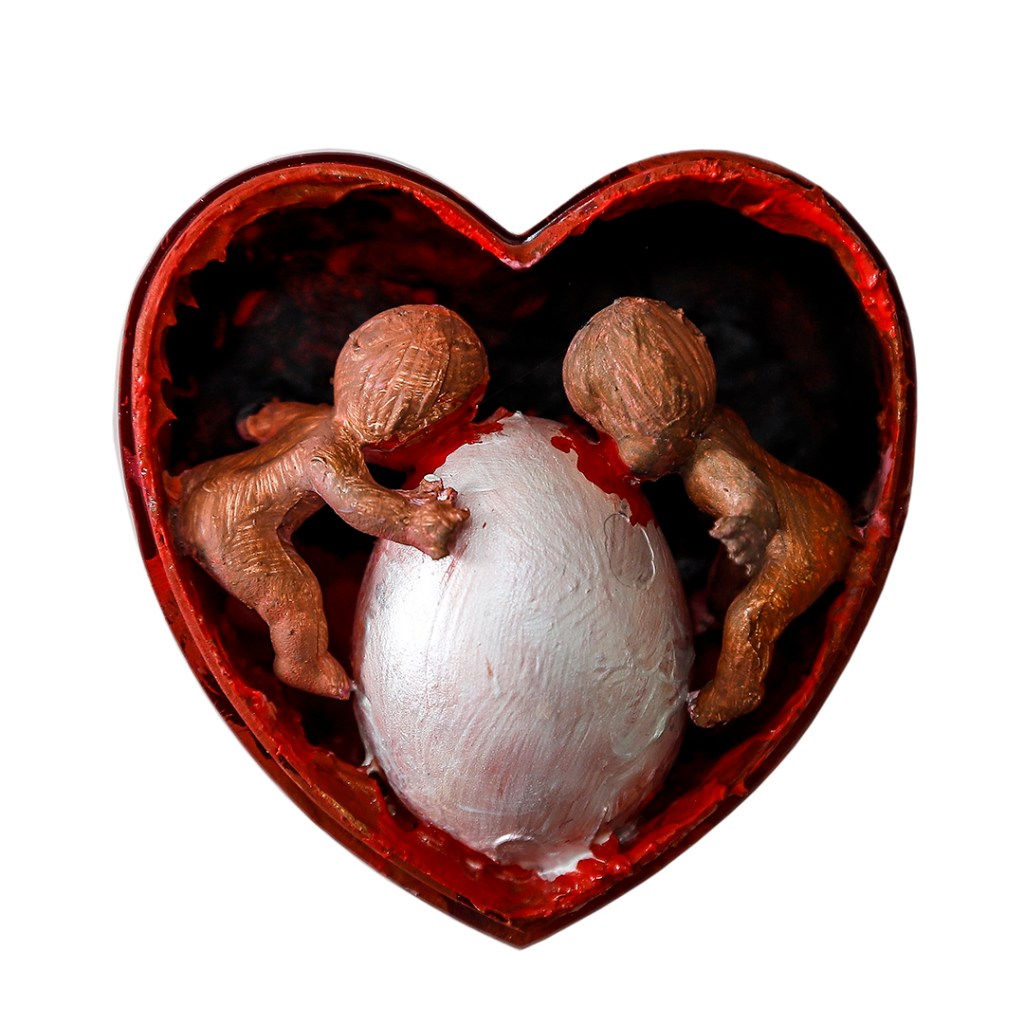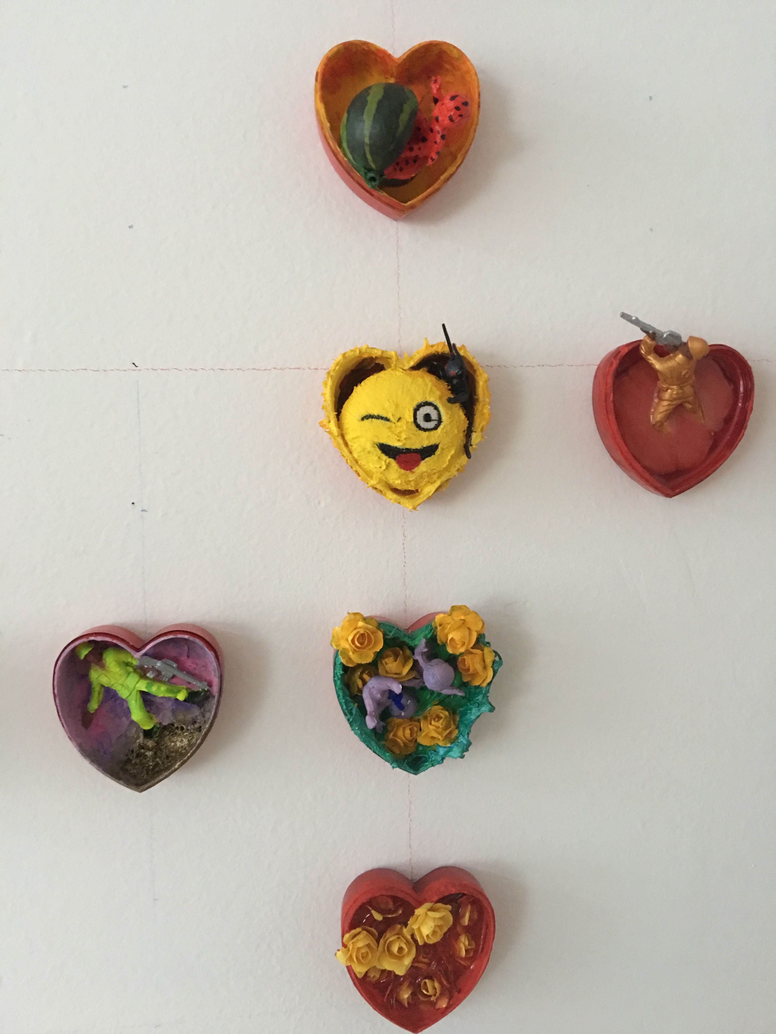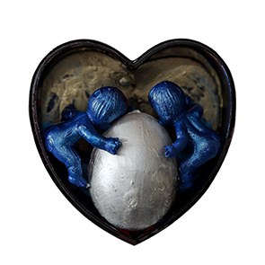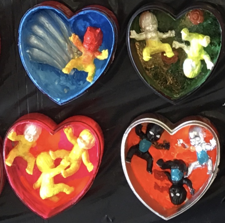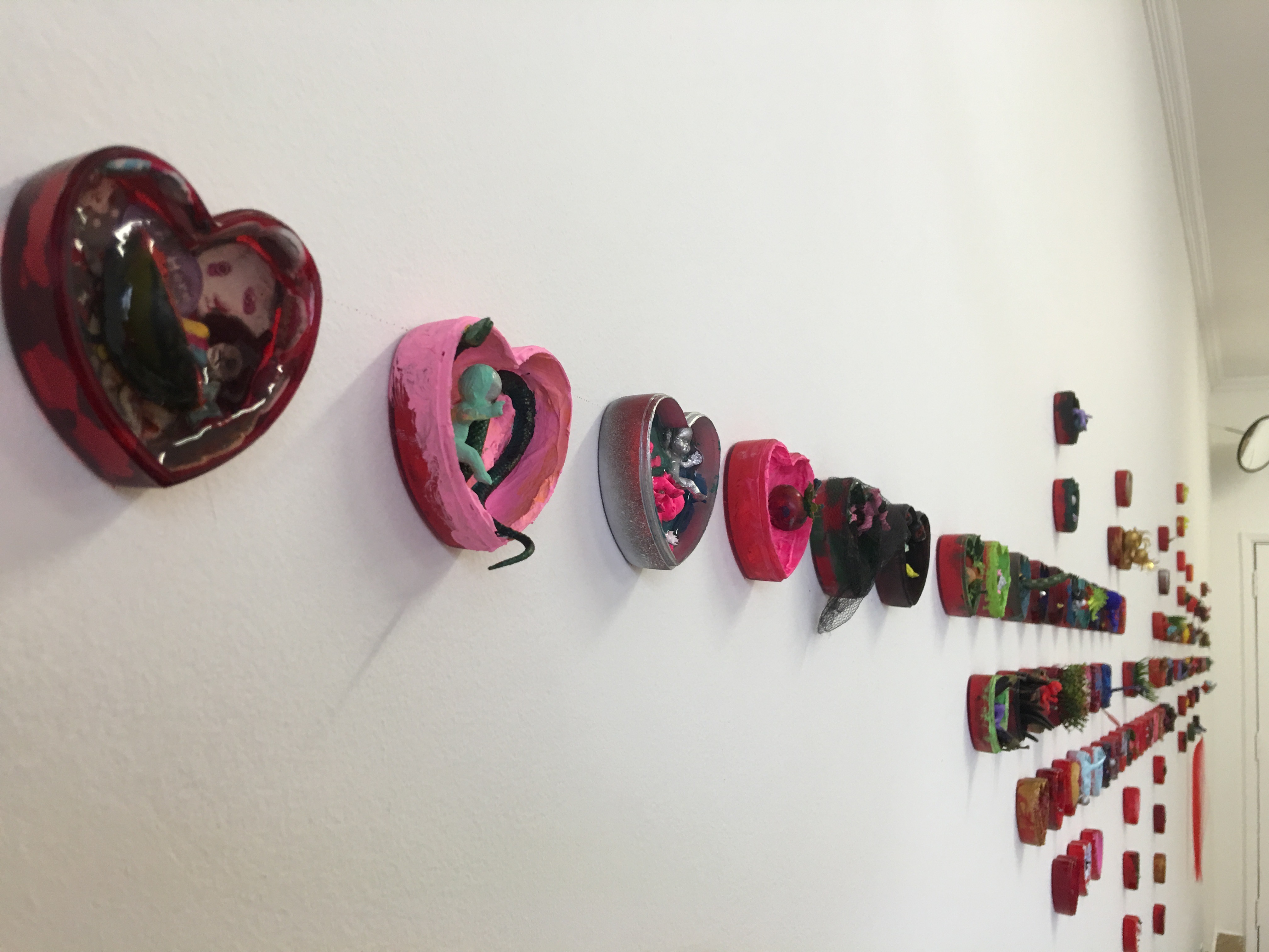 sacré coeur de marie é uma instalação composta por 309 esculturas em forma de coração, cada uma contendo uma pequena cena e, como as páginas de um livro, podem revelar múltiplas histórias.